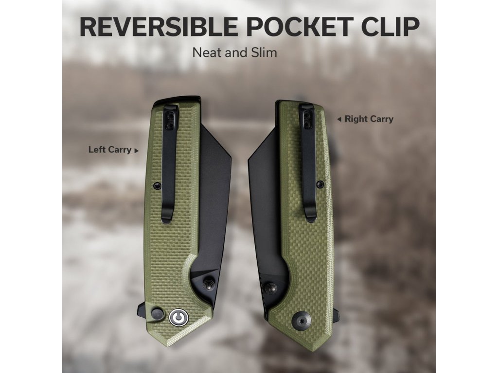 Amirite este un cuțit pliabil din categoria EDC, conceput pentru a vă ușura tăierea zilnică. Amirite are o lamă din oțel inoxidabil Nitro-V, cu finisaj satinat, o lungime de 8,8 cm și o grosime de 3 mm. Lama are un tăiș flat grind și o formă reverse tanto. Se deschide cu ajutorul unui știft pentru degetul mare (thumb stud). Deschis lungimea cuțitului este de 21,4 cm. Cuțitul are o blocare a lamei tip button lock. Închis, cuțitul măsoară 12,5 cm. Mânerul este fabricat din material G10 de culoare verde închis, care asigură o prindere fermă și confortabilă pentru mâna dumneavoastră. Amirite are, de asemenea, rulmenți ceramici cu bile, care asigură funcționarea mecanică lină a cuțitului. Mânerul include și o clemă Tip-Up din oțel inoxidabil. Greutatea cuțitului Civivi Amirite este de 130 g.
