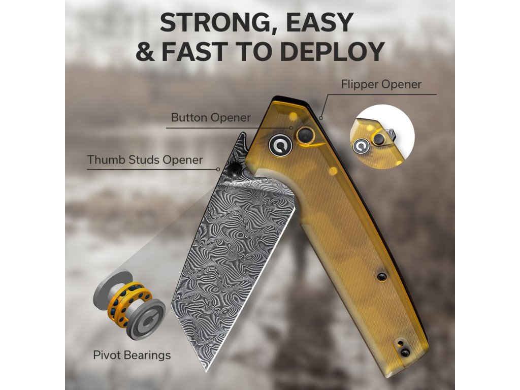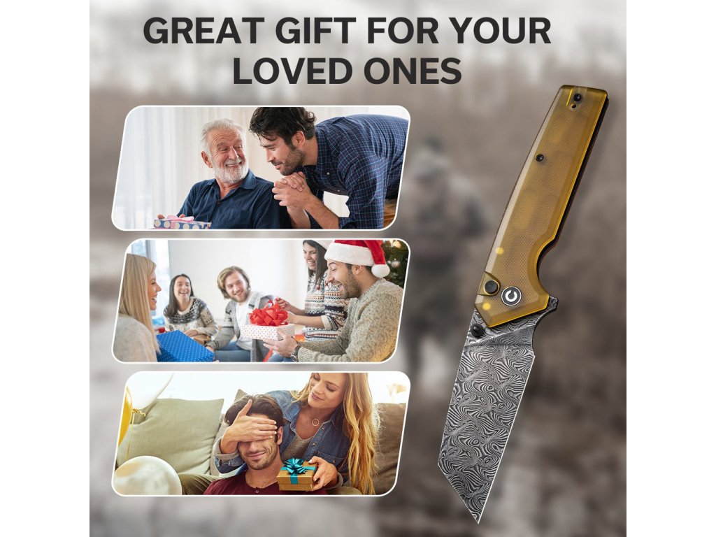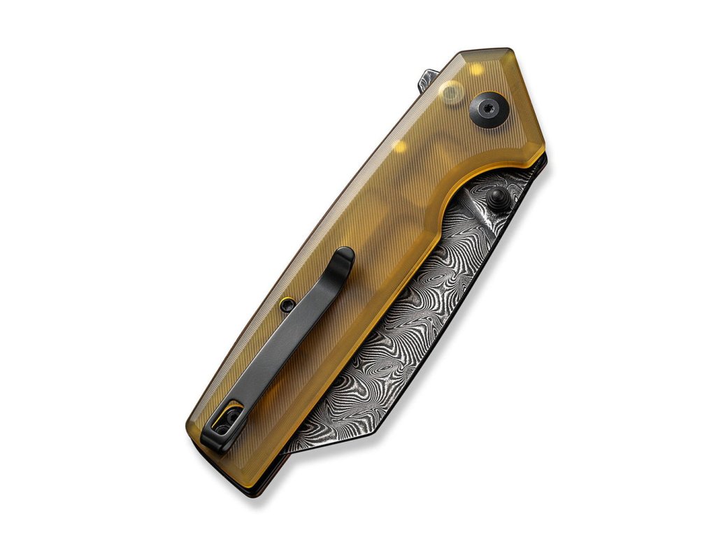 Amirite este un cuțit pliabil din categoria EDC, conceput pentru a vă ușura tăierea zilnică. Amirite Damascus are o lamă din oțel de Damasc cu finisaj negru, o lungime de 8,8 cm și o grosime de 3 mm. Lama are un tăiș flat grind și o formă reverse tanto. Se deschide cu ajutorul unui știft pentru degetul mare (thumb stud) sau flipper. Deschis lungimea cuțitului este de 21,4 cm. Cuțitul are o blocare a lamei tip button lock. Închis, cuțitul măsoară 12,5 cm. Mânerul este fabricat din material Ultem® de culoare maro. Ultem (polieterimid) este un material plastic semitransparent, foarte rezistent, care poate funcționa în medii cu temperaturi ridicate. Este rezistent la apă fierbinte și aburi. Amirite are, de asemenea, rulmenți ceramici cu bile, care asigură funcționarea mecanică lină a cuțitului. Mânerul include și o clemă Tip-Up din oțel inoxidabil. Greutatea cuțitului Civivi Amirite Damascus este de 120 g.