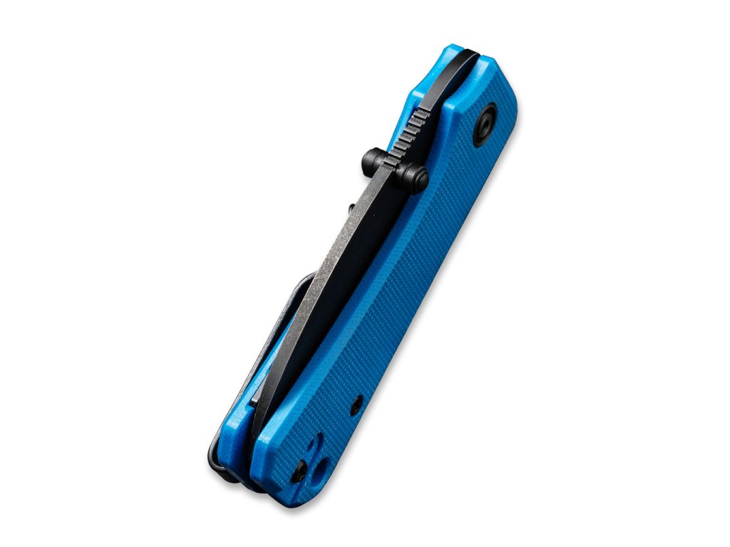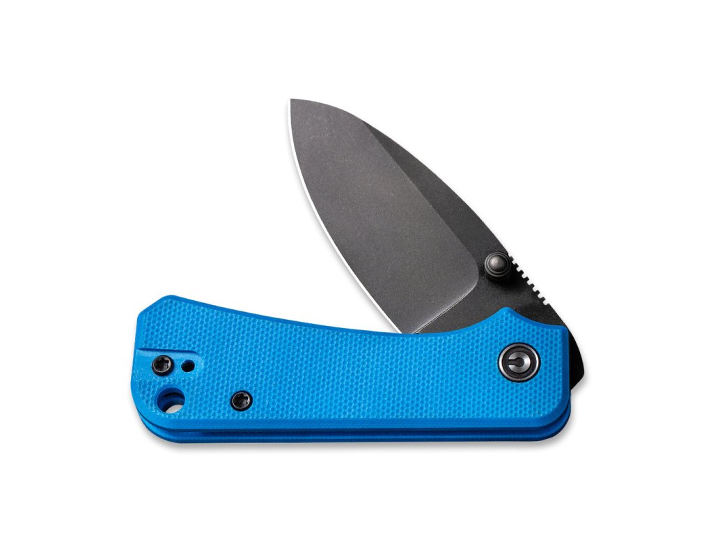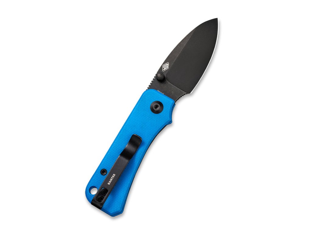 Cuțitul pliabil Civivi Baby Banter C19068S-3 este un instrument excelent pentru utilizare zilnică. Veți aprecia dimensiunile reduse și funcționalitatea ridicată încă de la prima utilizare. Lama, cu lungimea de 5,9 cm, este fabricată din oțel inoxidabil Nitro V, are o formă drop point și un finisaj stonewash negru. Blocarea cuțitului este asigurată de un mecanism liner lock de calitate. Mânerul este fabricat din material G-10 de culoare albastru strălucitor. Deschiderea cuțitului este foarte ușoară și lină, lama este montată pe rulmenți ceramici. Pentru a deschide cuțitul cu ajutorul știftul pentru degetul mare, este suficientă o singură mână. Cuțitul conține o clemă dublă din oțel inoxidabil pentru agățare.