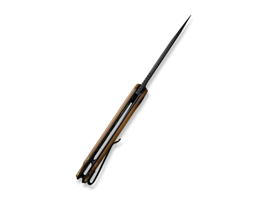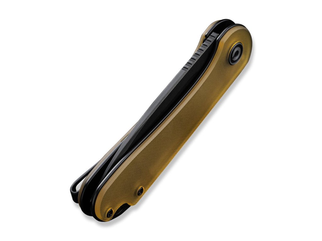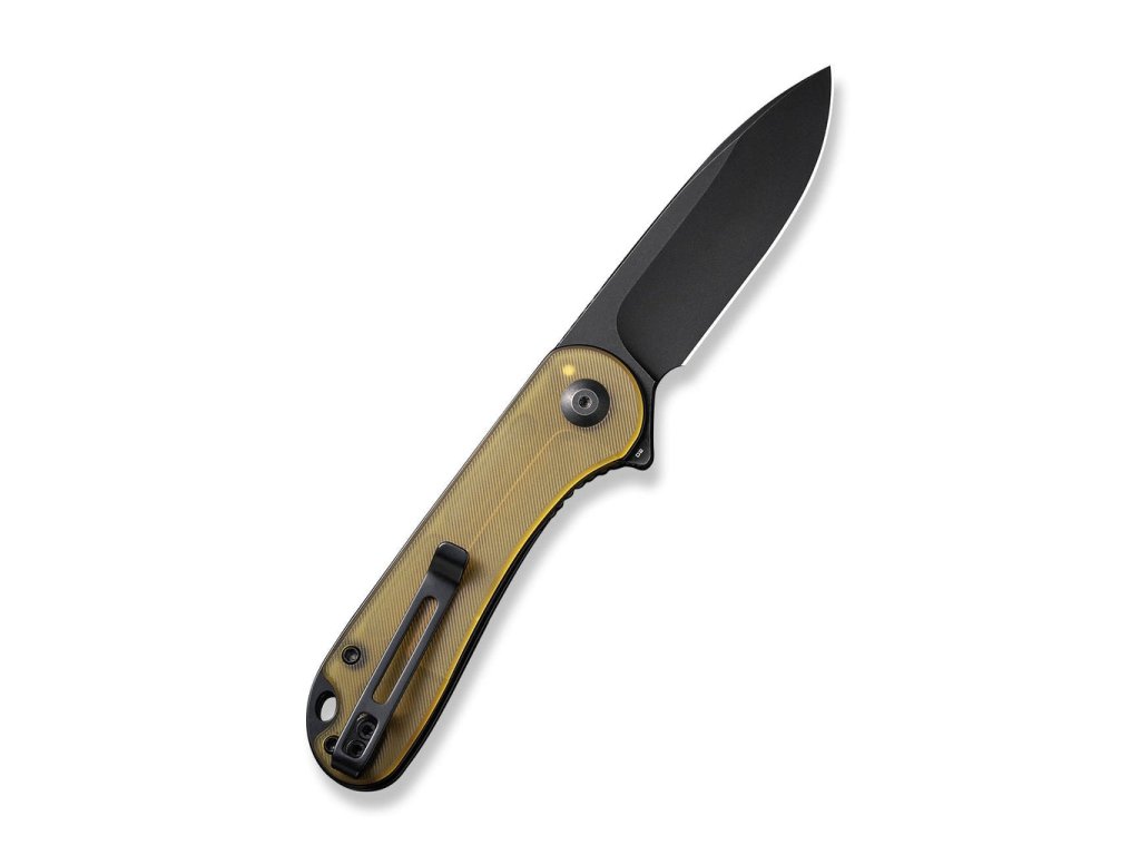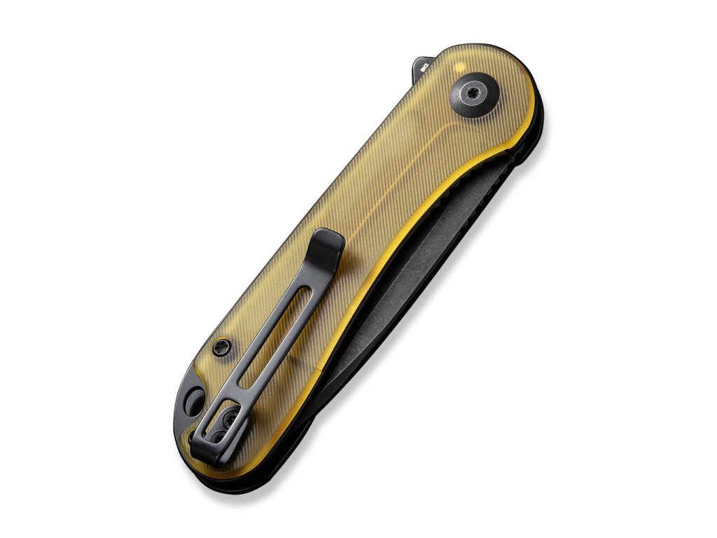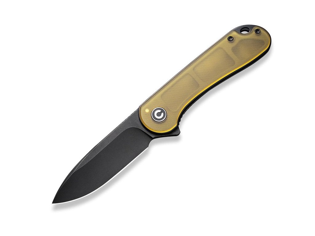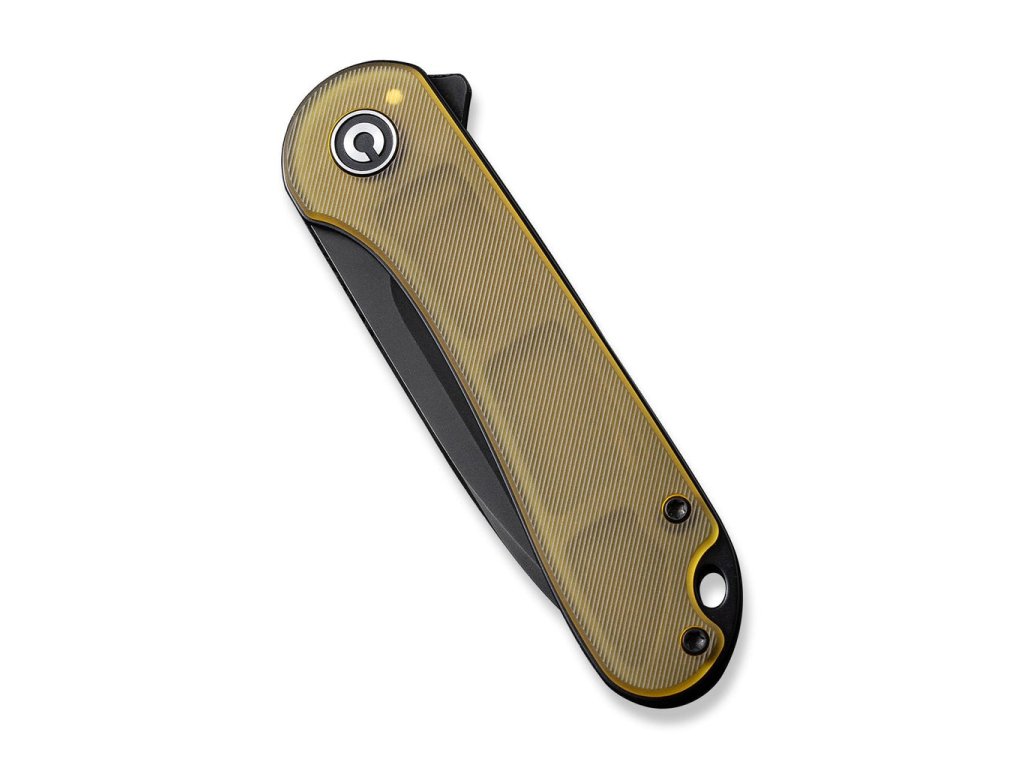 Cuțit pliabil care impresionează prin designul simplu și calitatea execuției. Civivi Elementum este un cuțit EDC mai mic, elegant, cu o notă de lux. Lama, din oțel pentru unelte D2, are un finisaj negru stonewash și un tăiș hollow grind. Blocare a lamei de tip liner lock. Mâner din Ultem de culoare galbenă. Ultem™ este un material termoplastic de bună calitate dezvoltat pentru industria aeronautică. Este cunoscut pentru rezistența sa excepțională la condiții extreme. Clemă pentru agățarea cuțitului din oțel inoxidabil. Deschiderea cu o singură mână este asigurată de un flipper. Deschiderea cuțitului este foarte ușoară și lină, lama este montată pe rulmenți ceramici.