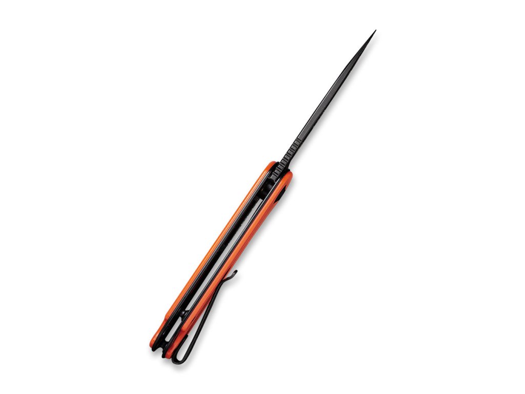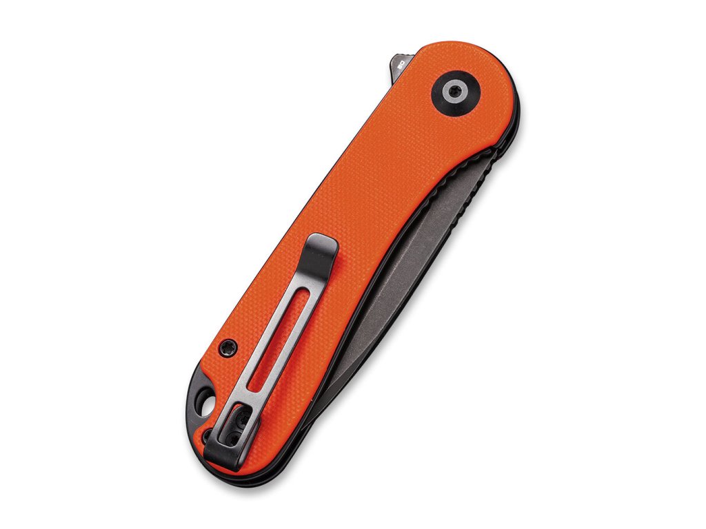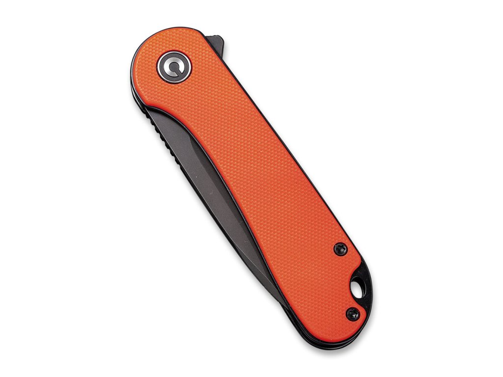 Cuțitul pliabil Civivi Elementum C907Y este util în viața de zi cu zi pentru diverse activități. Veți aprecia dimensiunea ideală și funcționalitatea ridicată încă de la prima utilizare. Lamă de 7,5 cm din oțel D2 cu finisaj stonewash negru. Blocare a lamei tip liner lock. Mânerul este fabricat din G-10 de culoare portocaliu. Cuțitul se deschide foarte ușor și fără efort, lama fiind montată pe rulmenți ceramici. Cuțitul poate fi deschis rapid cu o singură mână cu ajutorul unui flipper.