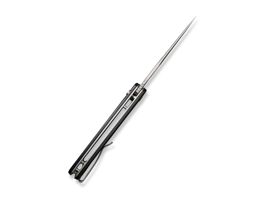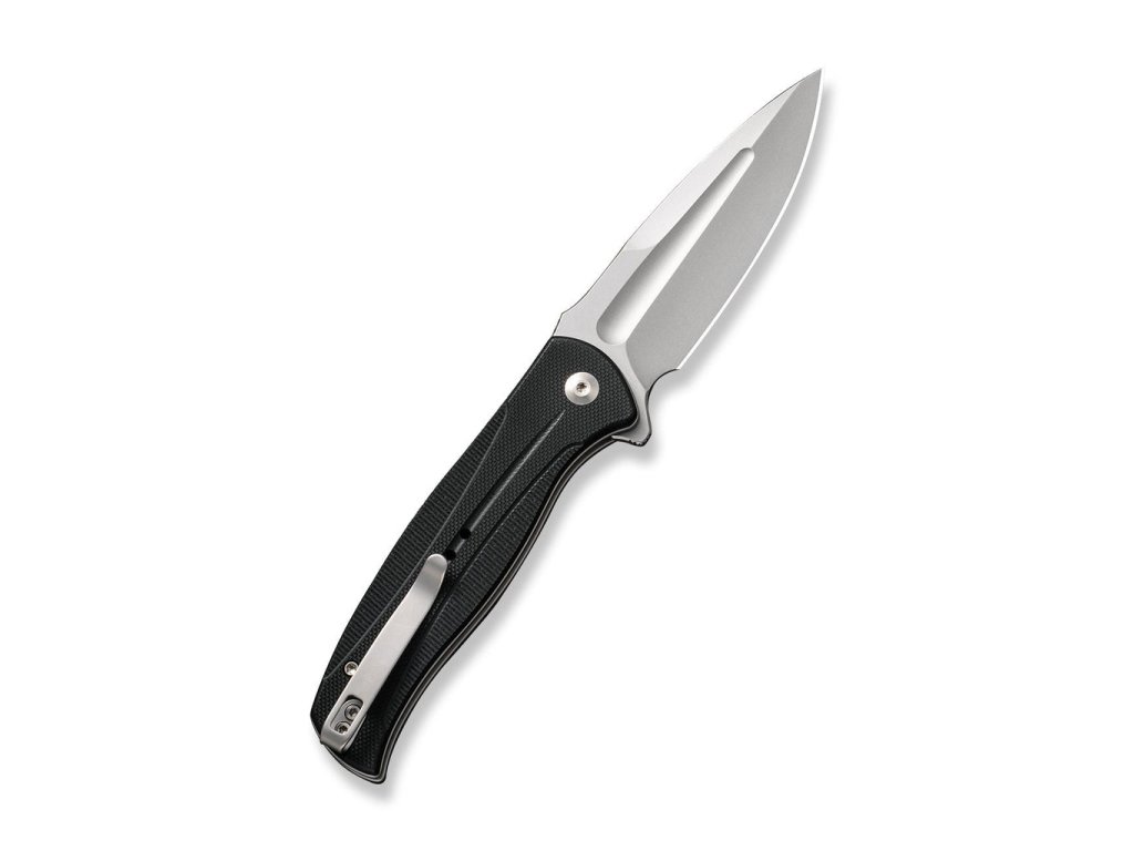 Mânerul cu lungimea de 11,3 cm este fabricat din G10 negru și garantează o prindere confortabilă, care nu va obosi mâna. Se deschide cu ajutorul unui flipper sau buton. Blocare a lamei tip button lock, ce exclude deschiderea accidentală. Cuțitul are rulmenți ceramici cu bile, care asigură o funcționare lină și durabilă a cuțitului.