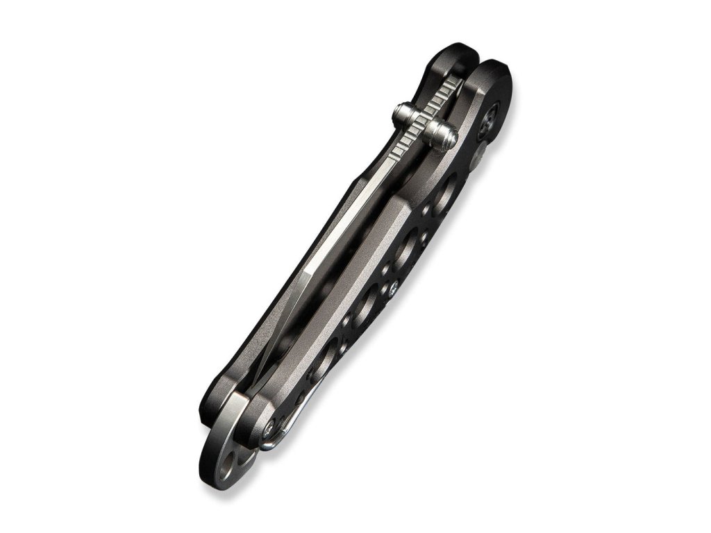 Mânerul scheletizat cu lungimea de 8,9 cm este fabricat din aluminiu de culoare gri, care este foarte confortabil de ținut în mână. Cuțitul are, de asemenea, rulmenți ceramici cu bile, datorită cărora funcționarea mecanică a cuțitului este lină și fără probleme . Pe mâner se află un orificiu pentru trecerea șnurului.