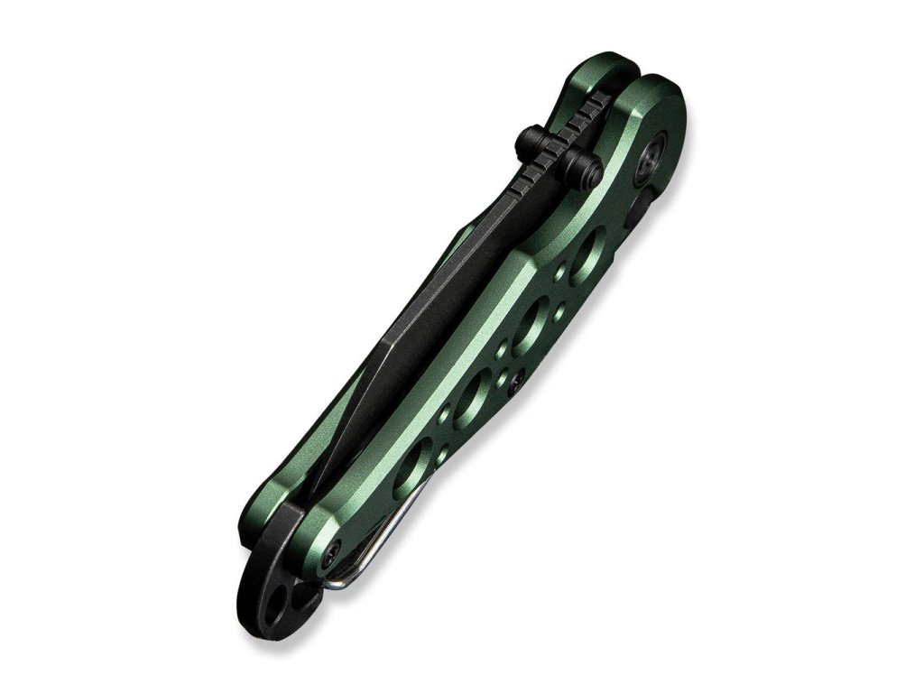 Mânerul scheletizat cu lungimea de 8,9 cm este fabricat din aluminiu de culoare verde, care este foarte confortabil de ținut în mână. Cuțitul are, de asemenea, rulmenți ceramici cu bile, datorită cărora funcționarea mecanică a cuțitului este lină și fără probleme . Pe mâner se află un orificiu pentru trecerea șnurului.