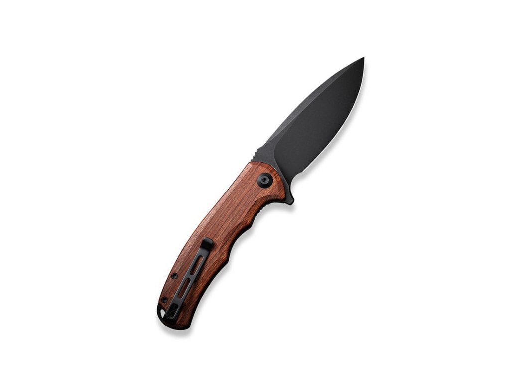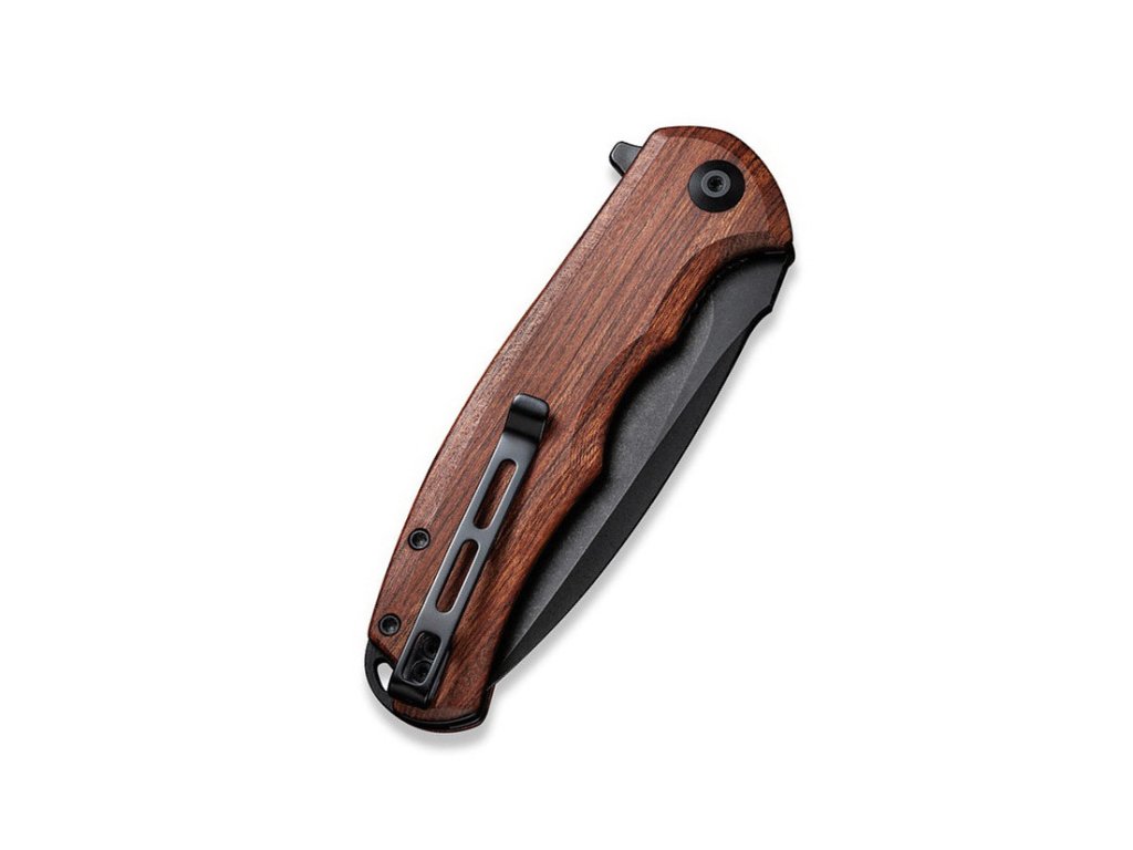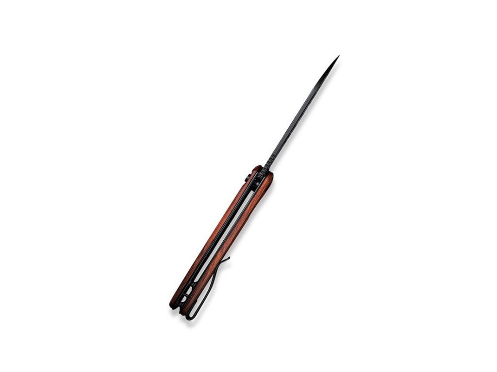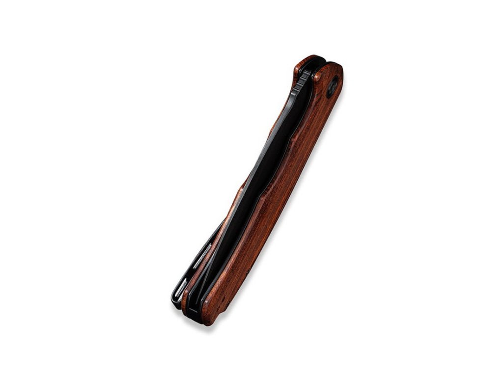 Cuțit pliabil elegant cu mâner din lemn și lamă din oțel inoxidabil. Civivi Praxis este un cuțit EDC cu un aspect unic. Lamă din oțel inoxidabil 9Cr18Mov, cu duritate 57-59 HRC și tăiș flat grind. Blocarea cuțitului este realizată cu un mecanism liner lock. Mânerul este fabricat din lemn exotic Cuibourtia oferă cuțitului un aspect luxos și elegant. Cuțitul poate fi deschis rapid cu o singură mână cu ajutorul unui flipper. Deschiderea cuțitului este foarte ușoară și lină, lama fiind montată pe rulmenți ceramici. Cuțitul are o clemă din oțel inoxidabil pentru agățare.