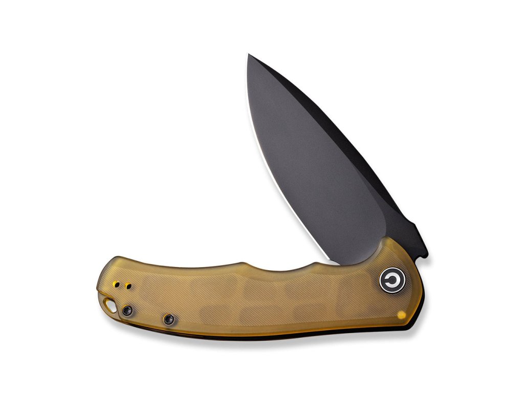 Civivi Praxis este un cuțit pliabil potrivit pentru utilizare zilnică. Dimensiunea medie și funcționalitatea ridicată fac din acest cuțit un instrument excelent pentru utilizare versatilă. Lamă de 9,5 cm lungime, din oțel inoxidabil 9Cr18Mov, cu finisaj negru. Blocarea cuțitului este realizată cu un mecanism liner lock. Mâner din material Ultem de culoare galbenă. Ultem™ este un material termoplastic de bună calitate dezvoltat pentru tehnologia aeronautică. Este cunoscut pentru rezistența sa excepțională la condiții extreme. Cuțitul poate fi deschis rapid cu o singură mână cu ajutorul unui flipper. Deschiderea cuțitului este foarte ușoară și lină, lama fiind montată pe rulmenți ceramici. Cuțitul are o clemă din oțel inoxidabil pentru agățare, care poate fi montată pe ambele părți.
