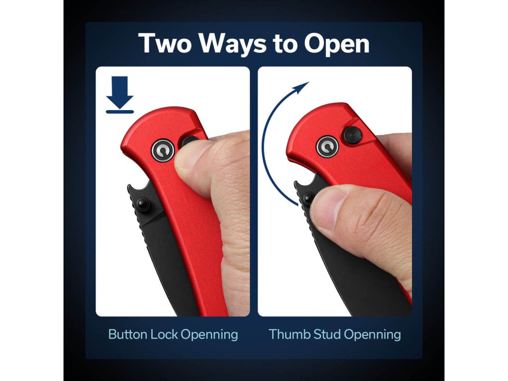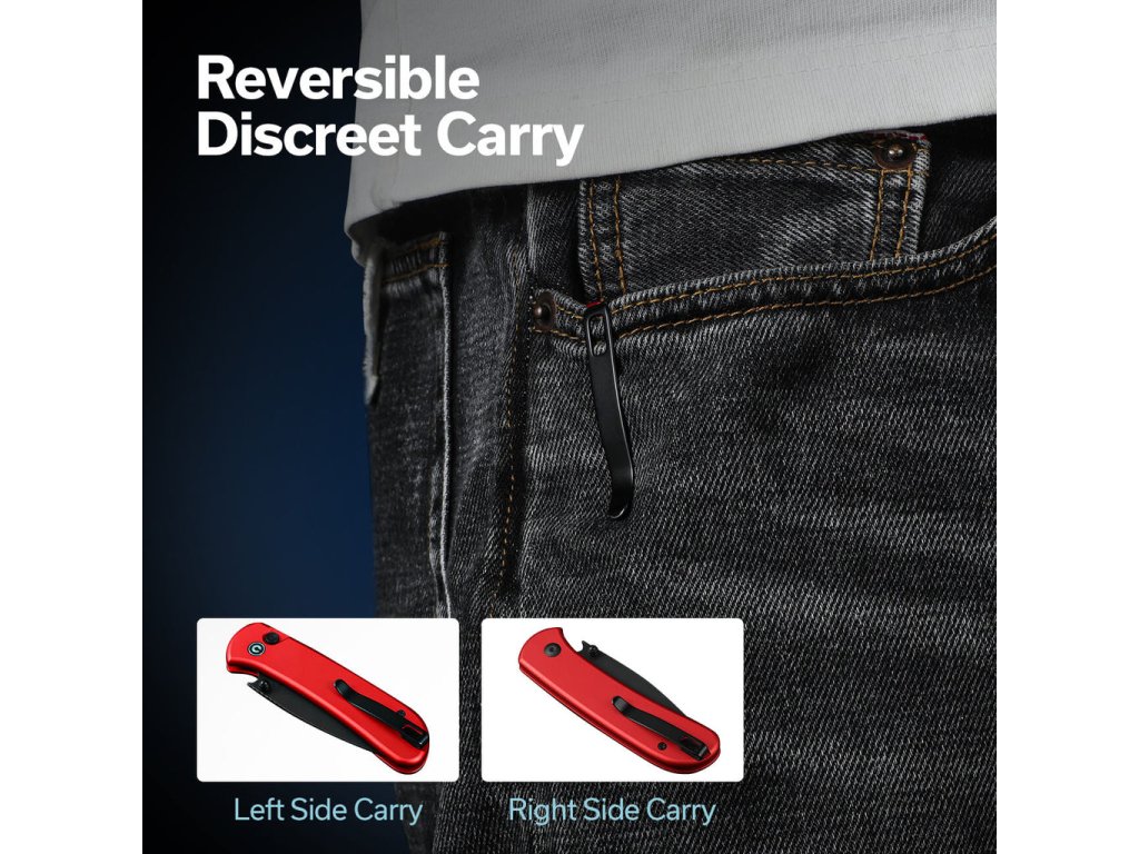 Cuțitul are, de asemenea, rulmenți ceramici cu bile, care asigură funcționarea mecanică lină a cuțitului. Mânerul cuțitului este fabricat din aluminiu roșu. Poate fi folosit și ca deschizător de sticle. Închis, cuțitul măsoară 10,7 cm. Are, de asemenea, o clemă Tip-Up pentru agățare. Cuțitul cântărește doar 80 g, astfel încât manevrarea acestuia este confortabilă, precisă și fără efort. Experimentați funcționalitatea, confortul și frumusețea într-un singur pachet, pe care vă puteți baza întotdeauna în activitățile dvs. zilnice de tăiere.