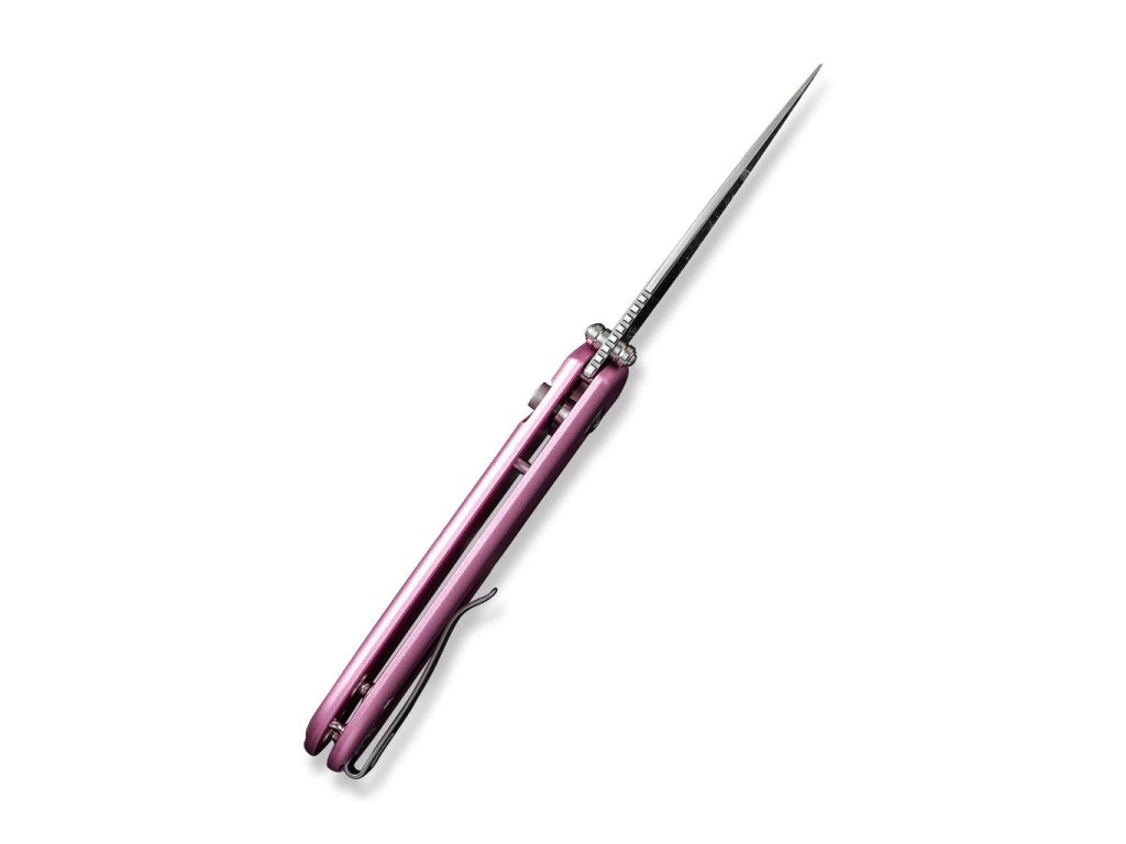 Cuțitul are, de asemenea, rulmenți ceramici cu bile, care asigură funcționarea mecanică lină a cuțitului. Mânerul cuțitului este fabricat din aluminiu roz. Poate fi folosit și ca deschizător de sticle. Închis, cuțitul măsoară 10,7 cm. Are, de asemenea, o clemă Tip-Up pentru agățare. Cuțitul cântărește doar 80 g, astfel încât manevrarea acestuia este confortabilă, precisă și fără efort. Experimentați funcționalitatea, confortul și frumusețea într-un singur pachet, pe care vă puteți baza întotdeauna în activitățile dvs. zilnice de tăiere.