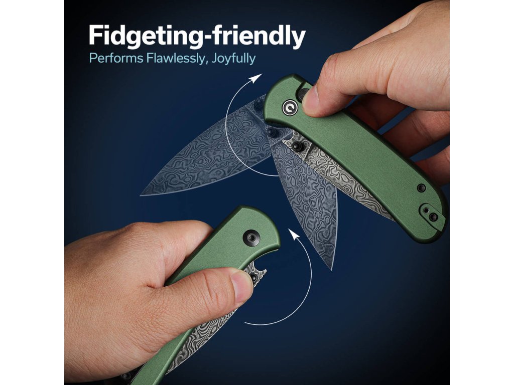 Cuțitul are, de asemenea, rulmenți ceramici cu bile, care asigură funcționarea mecanică lină a cuțitului. Mânerul cuțitului este fabricat din aluminiu verde. Poate fi folosit și ca deschizător de sticle. Închis, cuțitul măsoară 10,7 cm. Are, de asemenea, o clemă Tip-Up pentru agățare. Cuțitul cântărește doar 80 g, astfel încât manevrarea acestuia este confortabilă, precisă și fără efort. Experimentați funcționalitatea, confortul și frumusețea într-un singur pachet, pe care vă puteți baza întotdeauna în activitățile dvs. zilnice de tăiere.