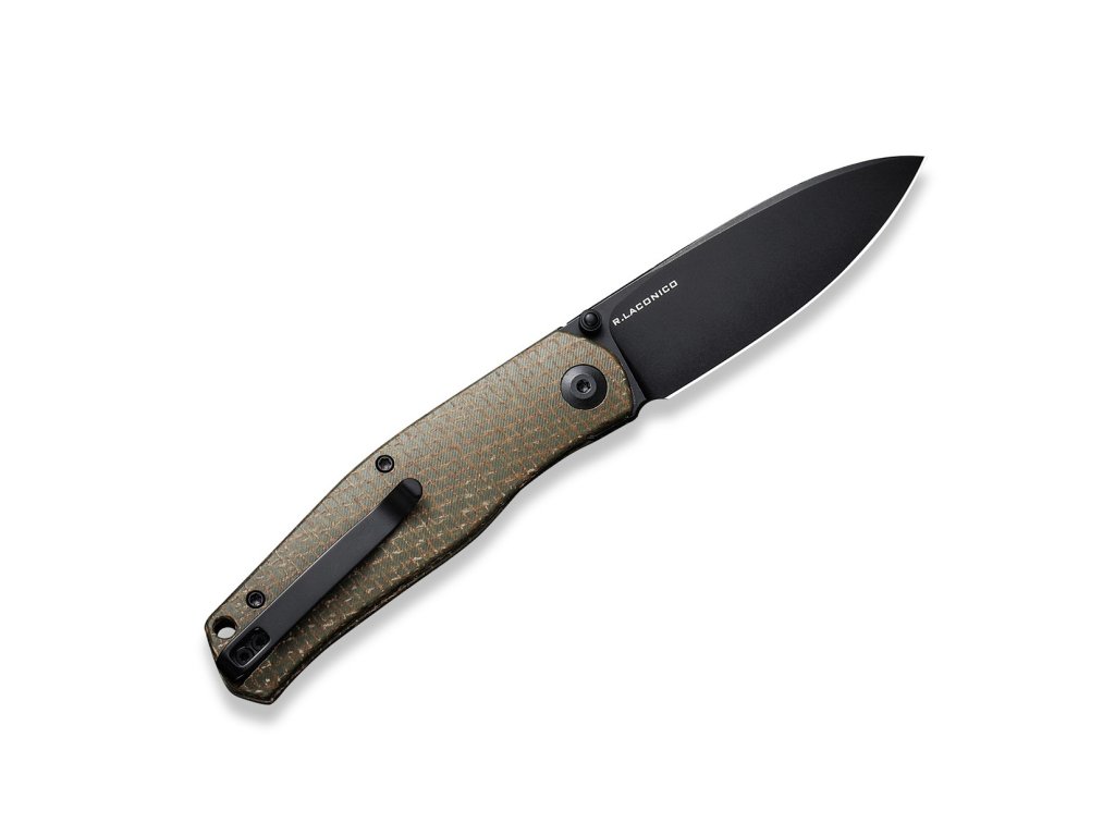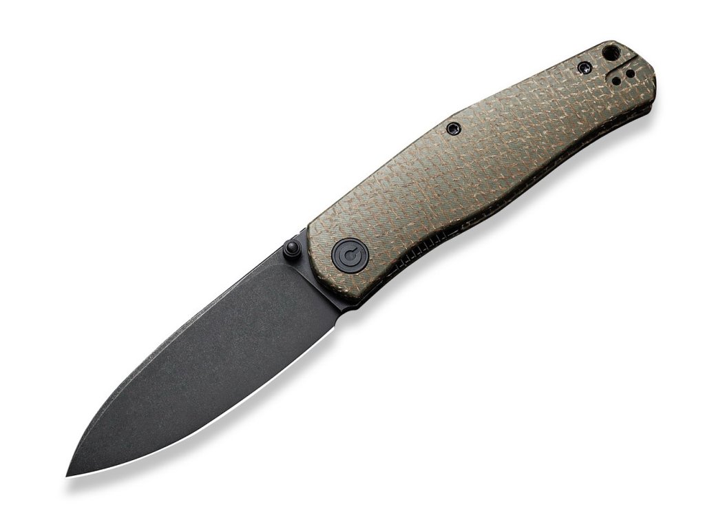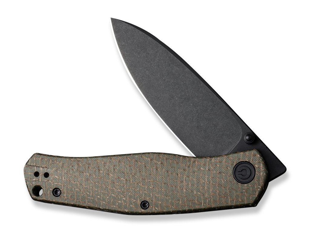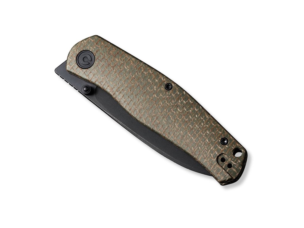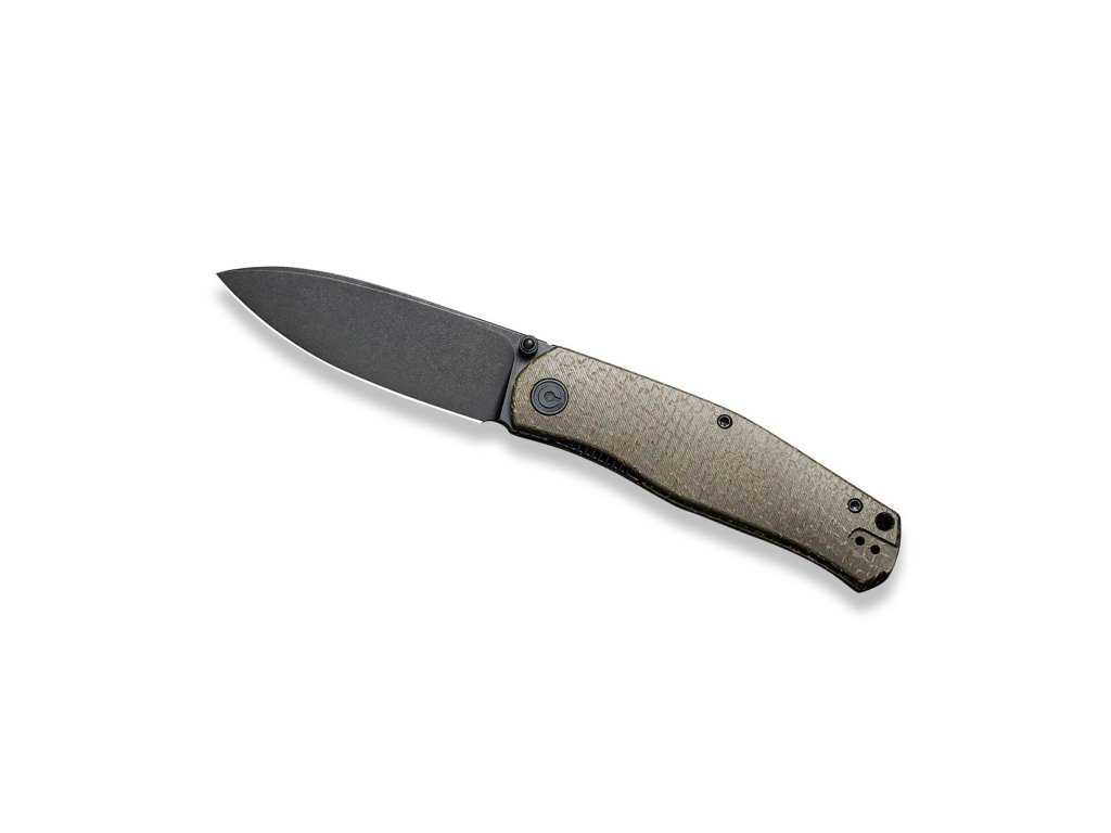 Mânerul este fabricat din micarta verde. Clema pentru agățarea cuțitului este realizată din oțel inoxidabil. Deschiderea cu o singură mână este asigurată de un front flipper sau de un știft de pe lamă. Deschiderea cuțitului este foarte ușoară și lină, lama este montată pe rulmenți ceramici.