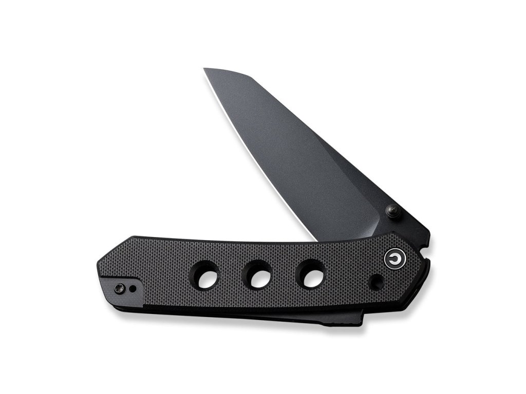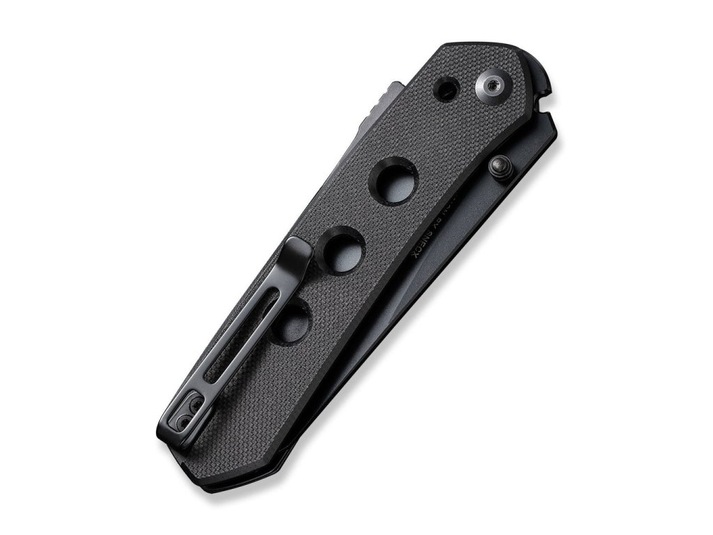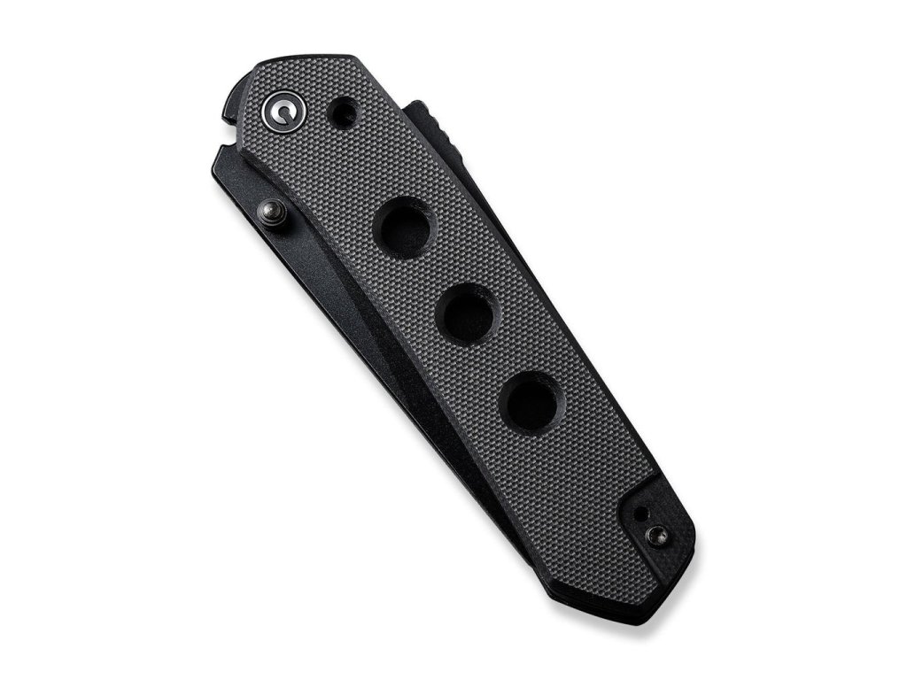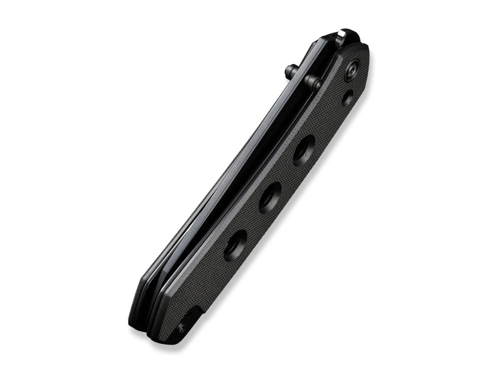 Mânerul este fabricat din G10 negru cu textură anti-alunecare plăcută. Clema este realizată din oțel inoxidabil. Deschidere cu ajutorul unui știft pe lamă.