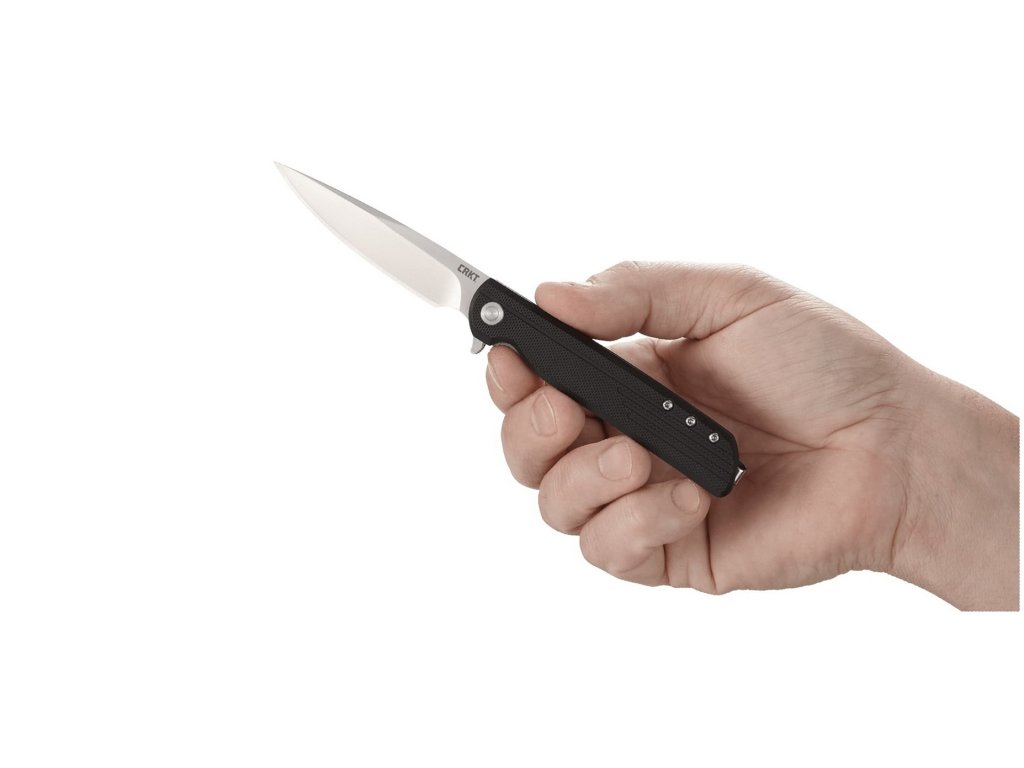 CRKT LCK+ este un cuțit pliabil EDC pentru uz zilnic, cu tăiș tip hollow grind. Lama, de lungime 8,4 cm, este fabricată din oțel inoxidabil 8Cr13MoV, are un finisaj mat și un tăiș tip hollow grind. Cuțitul se deschide cu ajutorul unui flipper. Mâner fabricat din GRN (nailon întărit cu fibră de sticlă). Blocare a lamei tip Liner Lock. Clemă de oțel pentru agățare.