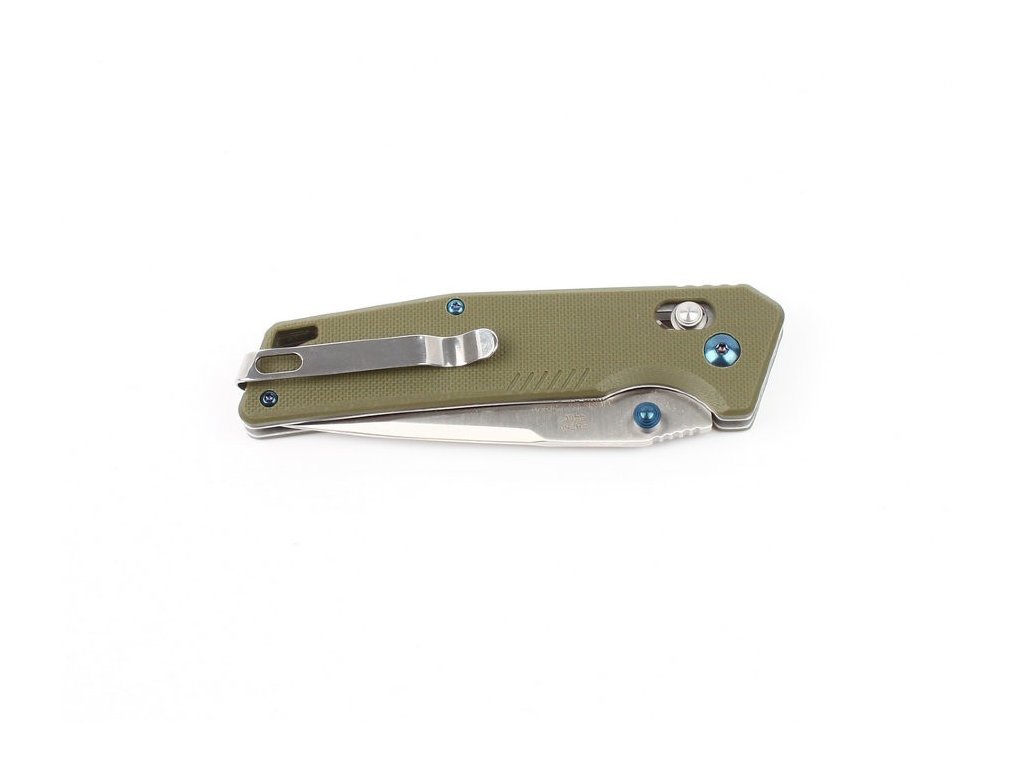 Lama cuțitului este fabricată din oțel inoxidabil 440C, are o lungime de 8,7 cm, o grosime de 3,3 mm și o duritate de 58 HRC. Mânerul este fabricat din material G10 de culoare verde și este foarte confortabil. În total, acest cuțit are o lungime totală de 20,5 cm deschis și o greutate de 120 g. Cuțitul este prevăzut cu un sistem de blocare a lamei G-Lock (Axis lock). Are o formă clasică drop point. Dacă sunteți în căutarea unui cuțit bun și fiabil pentru utilizare zilnică, acest model vă va satisface așteptările.