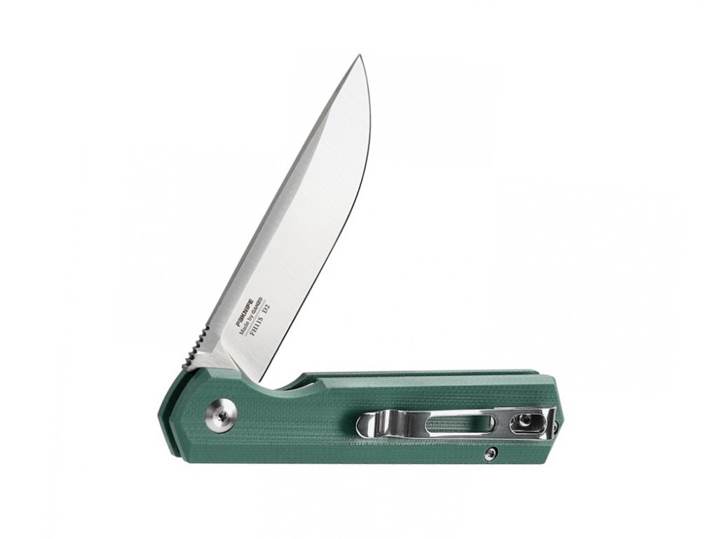 Vă prezentăm în continuare cuțitul compact, pliabil Firebird FH11S de la producătorul Ganzo. Acest cuțit îl puteți lua cu voi în drumeții, la picnic, în călătorii și excursii sau îl puteți folosi acasă. În toate cazurile, ca proprietar al modelului FH11S, veți fi mulțumit de compactitatea, eleganța, utilitatea și de caracterul său practic. Lama cuțitului este fabricată din oțel pentru unelte de tip D2, are o lungime de 7,8 cm, o grosime de 2,9 mm și o duritate de 60 HRC. Mânerul este fabricat din material G10 de culoare verde și este foarte confortabil. Acest cuțit are o lungime totală de 18,4 cm deschis și o greutate de numai 82 g. Cuțitul se deschide cu ajutorul unui flipper. Mecanism de blocare a lamei popular - linerlock. Închis, cuțitul măsoară 10,6 cm. Dacă sunteți în căutarea unui cuțit bun și fiabil pentru utilizare zilnică, acest model vă va satisface așteptările.