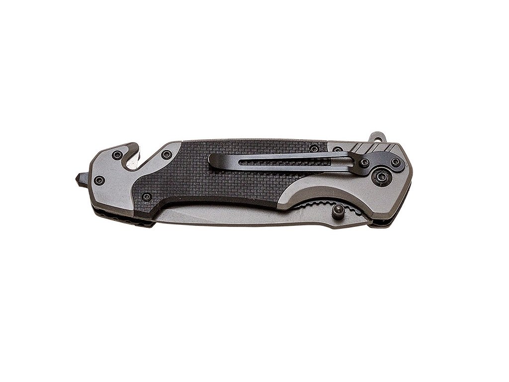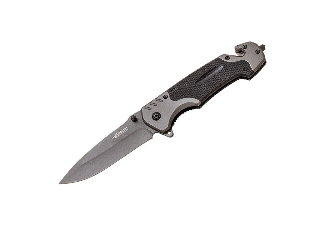 JKR PRO-10016 este un cuțit pliabil potrivit pentru situațiile de urgență care vă pot lua prin surprindere în viața de zi cu zi. Cuțitele din seria JKR PRO sunt fabricate din materiale de cea mai bună calitate și pot rezista chiar și celor mai exigente condiții. Lama drop point este fabricată din oțel 3Cr13MoV, are o lungime de 9,5 cm și un finisaj din titan. Oțelul inoxidabil utilizat este extrem de rezistent la uzură. Mânerul este fabricat din G10 negru, are o formă ergonomică și se potrivește perfect în mână. Cuțitul are un sistem de blocare a lamei linerlock. În partea din spate a mânerului se află un tăietor de centură și un spărgător de sticlă, care sunt esențiale în situații de urgență. Rulmenții cu bile sunt o caracteristică standard, ce fac deschiderea cuțitului și mai ușoară. Modelul JKR PRO este livrat cu o teacă din nailon și o lavetă pentru curățare.