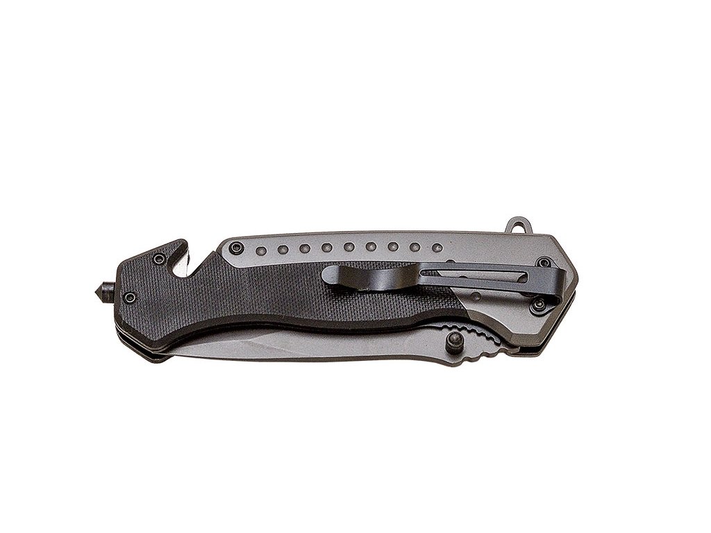 JKR PRO-10019 este un cuțit pliabil potrivit pentru situațiile de urgență care vă pot lua prin surprindere în viața de zi cu zi. Cuțitele din seria JKR PRO sunt fabricate din materiale de cea mai bună calitate și pot rezista chiar și celor mai exigente condiții. Lama drop point este fabricată din oțel 3Cr13MoV, are o lungime de 9,5 cm și un finisaj din titan. Oțelul inoxidabil utilizat este extrem de rezistent la uzură. Mânerul este fabricat din G10 negru, are o formă ergonomică și se potrivește perfect în mână. În partea din spate a mânerului se află un tăietor de centură și un spărgător de sticlă, care sunt esențiale în situații de urgență. Rulmenții cu bile sunt o caracteristică standard, ce fac deschiderea cuțitului și mai ușoară. Modelul JKR PRO este livrat cu o teacă din nailon și o lavetă pentru curățare.