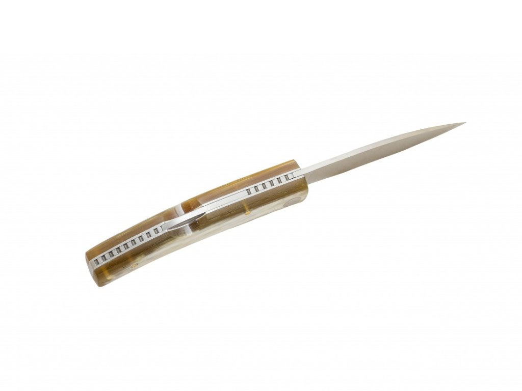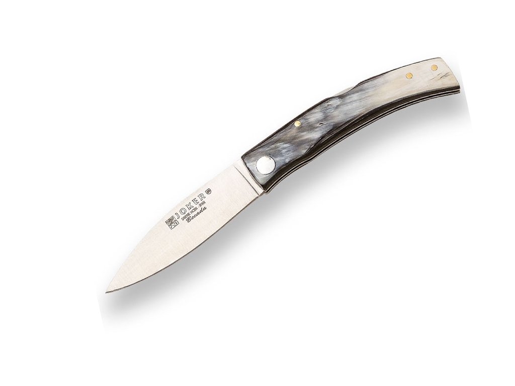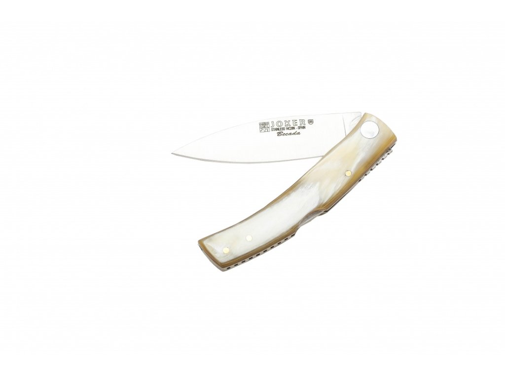 Cuțitul pliabil Joker NA153 este un cuțit original, cu mâner ușor curbat. Mânerul din corn de taur oferă cuțitului un aspect natural și va încânta orice pasionat de activități în aer liber. Lama are o formă drop point și un finisaj satinat. Cuțitul este fabricat din oțel inoxidabil clasic 14C28N și are o lungime de 8 cm. Cuțitul are un sistem de blocare a lamei Backlock. Acest tip de cuțit tradițional este cunoscut pentru versatilitatea și fiabilitatea sa. Este fabricat în întregime în Spania.