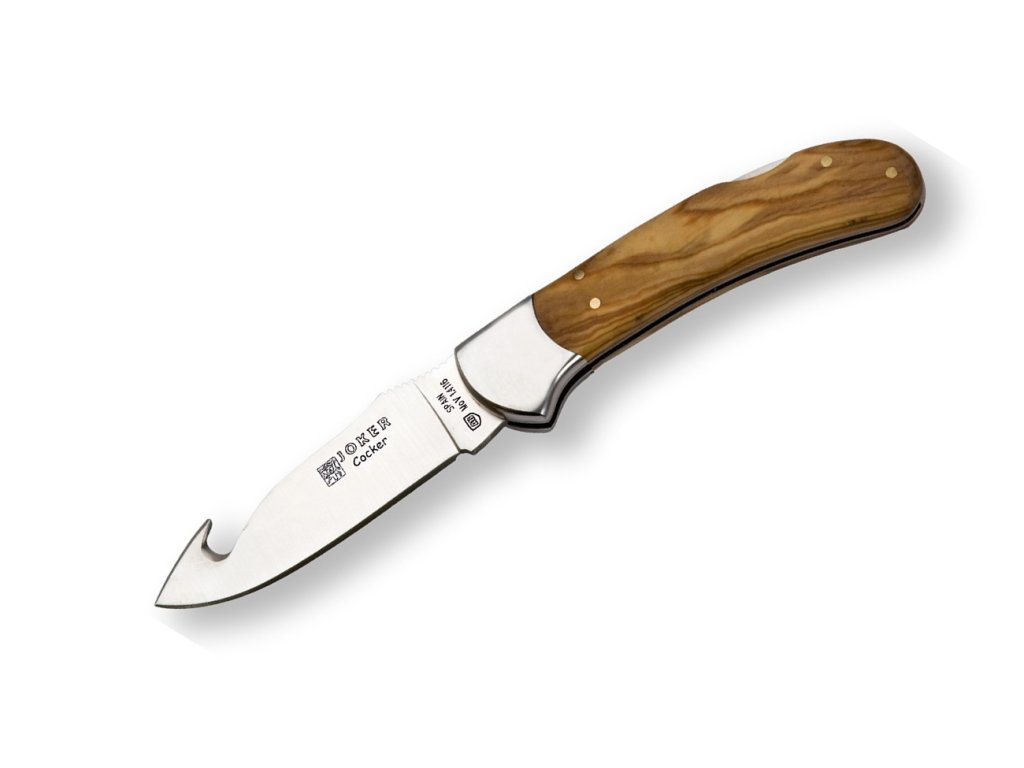 Cuțitul pliabil Joker Cocker NO50 este un cuțit de vânătoare de dimensiuni medii, cu mâner din lemn de măslin. Cuțitul este un partener ideal pentru excursii lungi în natură. Datorită greutății sale foarte reduse, este potrivit și pentru utilizare zilnică. Lama skinner are un cârlig distinctiv și o lungime de 9 cm și este fabricată din oțel inoxidabil tradițional X50CrMoV15 (1.4116), este rezistentă și are un finisaj satinat. Blocare a lamei Backlock pentru a preveni deschiderea accidentală. Între mâner și lamă este inserat un Bolster din oțel inoxidabil pentru a elimina murdăria. Veți fi impresionați de mânerul original din lemn de măslin. Cuțitul este fabricat în întregime în Spania.
