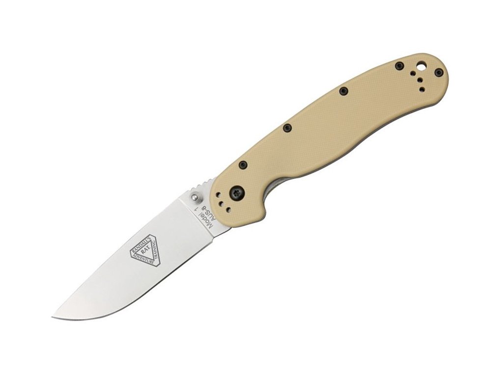 Ontario RAT 1 a fost creat în urma unei colaborări între Ontario Knife Company și Randall's Adventure & Training. RAT 1 este un cuțit pliabil excelent, testat în timp, pentru utilizare zilnică. Lama din oțel inoxidabil AUS-8 are un finisaj satinat. Lungimea lamei de 8,9 cm și forma drop point, îl fac un cuțit pliabil universal. Mânerul este fabricat din nailon de culoare nisipului. Blocare a lamei tip liner lock. Mânerul este foarte ușor de ținut în mână, datorită formei ergonomice. Mânerul are și o gaură pentru șnur. Clema pentru agățarea cuțitului se poate fixa pe ambele părți, ceea ce face cuțitul potrivit atât pentru dreptaci, cât și pentru stângaci.