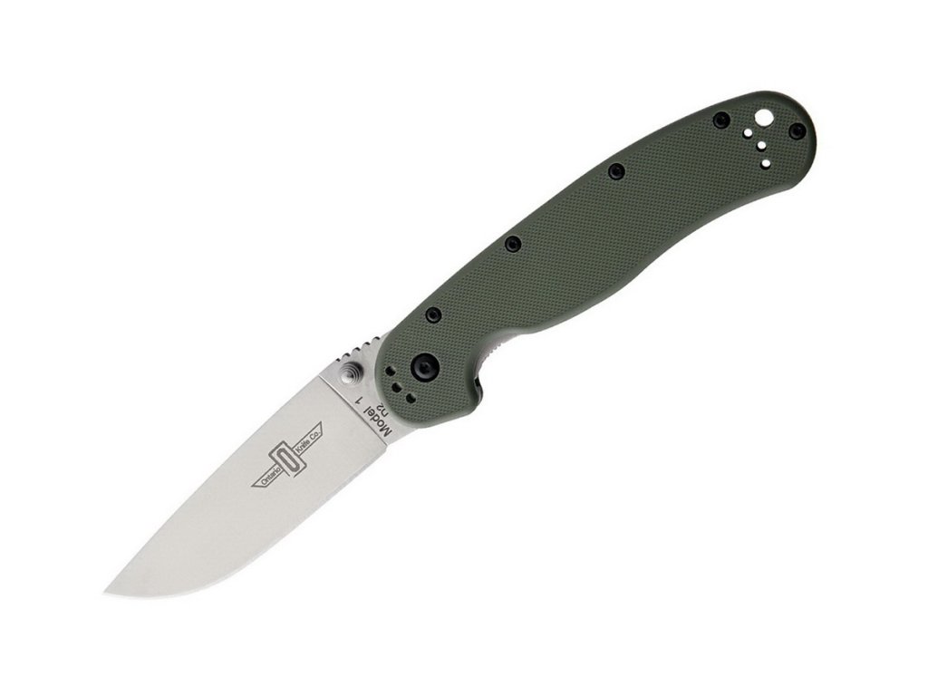 Ontario RAT 1 a fost creat în urma unei colaborări între Ontario Knife Company și Randall's Adventure & Training. RAT 1 este un cuțit pliabil excelent, testat în timp, pentru utilizare zilnică. Lama din oțel pentru unelte D2 are un finisaj mat și un tăiș tip flat grind. Lungimea lamei de 8,9 cm și forma drop point, îl fac un cuțit pliabil universal. Mânerul este fabricat din nailon verde măsliniu. Blocare a lamei tip liner lock. Mânerul este foarte ușor de ținut în mână, datorită formei ergonomice. Clema pentru agățarea cuțitului se poate fixa în patru poziții, ceea ce face cuțitul potrivit atât pentru dreptaci, cât și pentru stângaci.