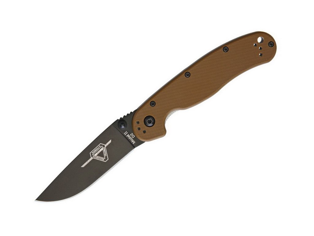 Ontario RAT 2 a fost creat în urma unei colaborări între Ontario Knife Company și Randall's Adventure & Training. RAT 2 este o versiune mai mică a cuțitului RAT 1, testat în timp, pentru utilizare zilnică. Lama din oțel pentru unelte D2 are un finisaj negru și un tăiș tip flat grind. Lungimea lamei de 7,6 cm și forma drop point, îl fac un cuțit pliabil universal mai mic. Mânerul este fabricat din nailon maro. Blocare a lamei tip liner lock. Mânerul este foarte ușor de ținut în mână, datorită formei ergonomice. Clema pentru agățarea cuțitului se poate fixa în patru poziții, ceea ce face cuțitul potrivit atât pentru dreptaci, cât și pentru stângaci.