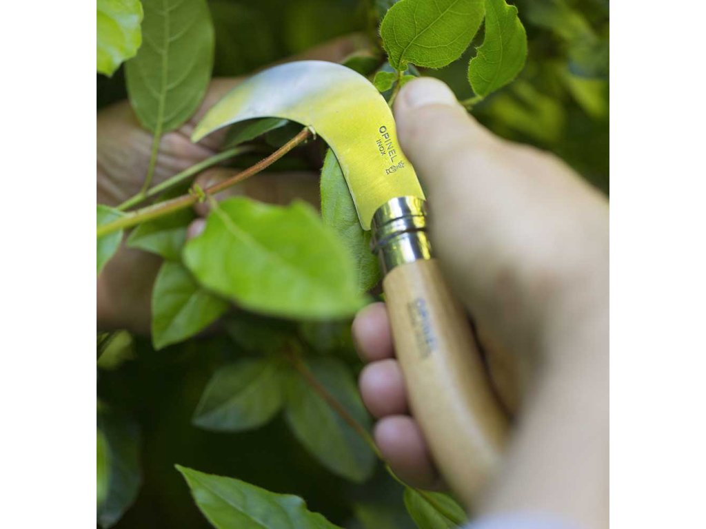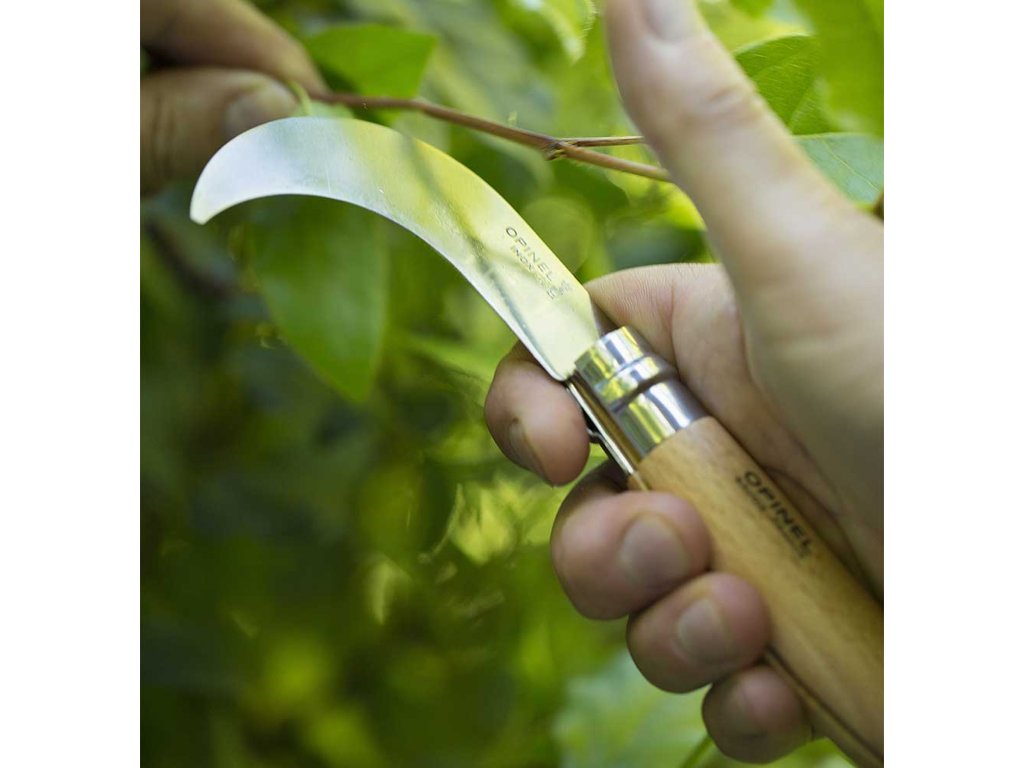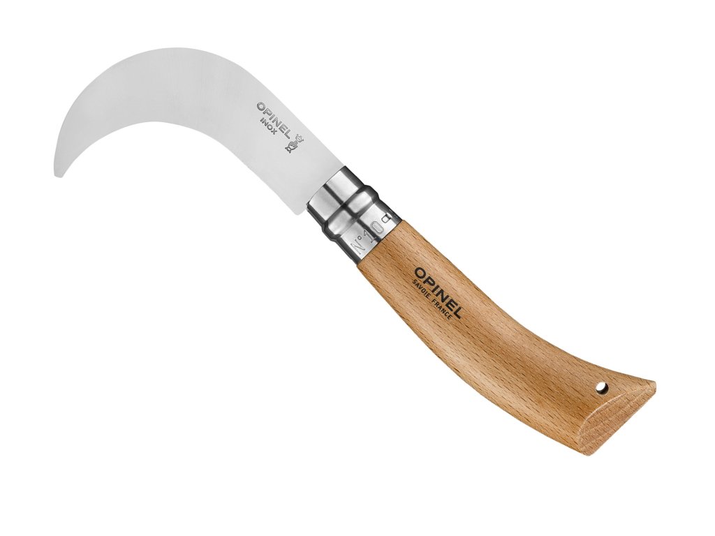 Cuțit pliabil cu lamă curbată, care amintește estetic de o coasă mică. Cu lama sa curbată de 8 cm, cu teșituri pe ambele părți, fabricată din oțel inoxidabil, este unealta perfectă pentru recoltare, tăierea tufișurilor sau culesul strugurilor. Mânerul este fabricat din lemn de fag și este confortabil în mână. Are o lungime totală de 20 cm, din care 10 cm reprezintă mânerul din lemn.