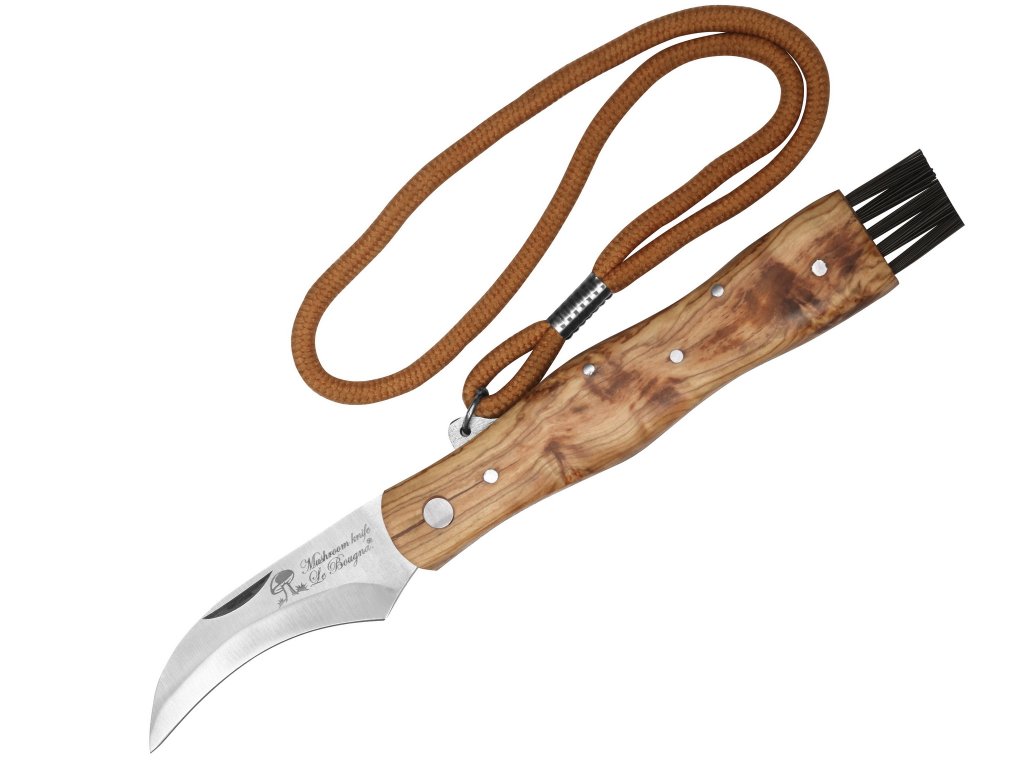 Cuțit pentru ciuperci cu un design atractiv. Lama, de 7 cm lungime, este concepută pentru curățarea și tăierea ciupercilor.. Mâner din lemn de tec, decorat cu nituri din alamă. Mânerul se termină cu o perie practică pentru curățarea ciupercilor. Inel pentru agățarea cordonului sau lanțului.