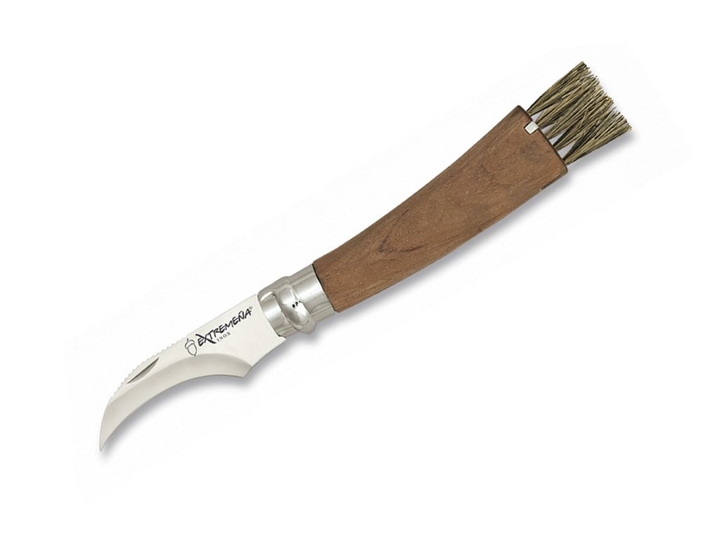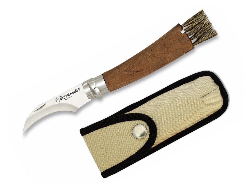Cuțit pentru ciuperci cu lamă curbată din oțel inoxidabil cu lungimea de 7,5 cm. Forma lamei este special adaptată pentru curățarea și tăierea ciupercilor. Are perii pentru curățarea ciupercilor de murdărie. Blocare a lamei girolock. Este inclusă o teacă textilă pentru cuțit pe care o puteți agăța la curea