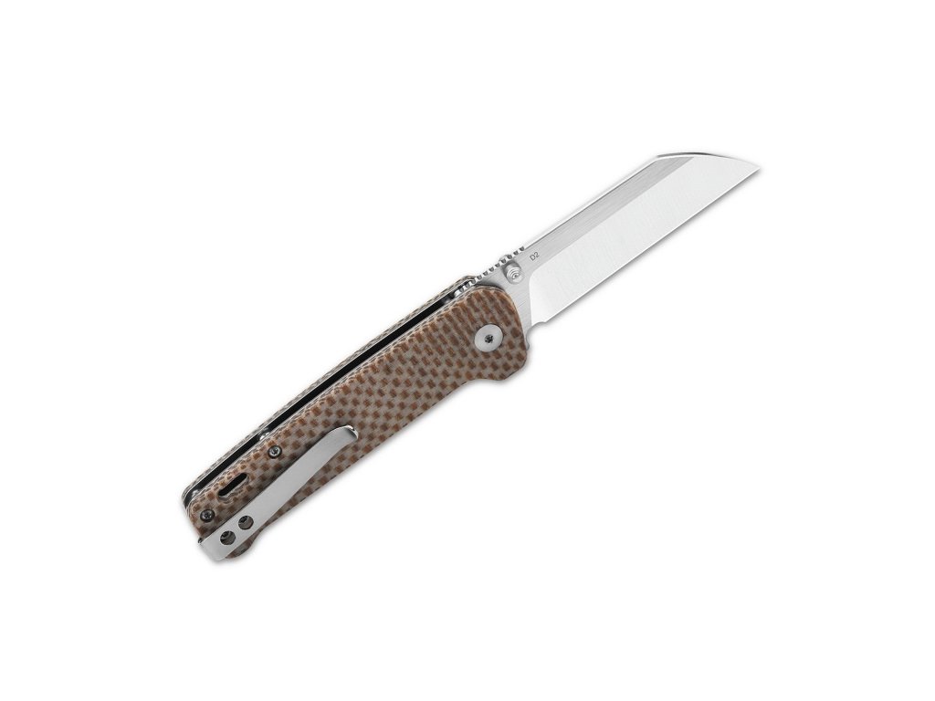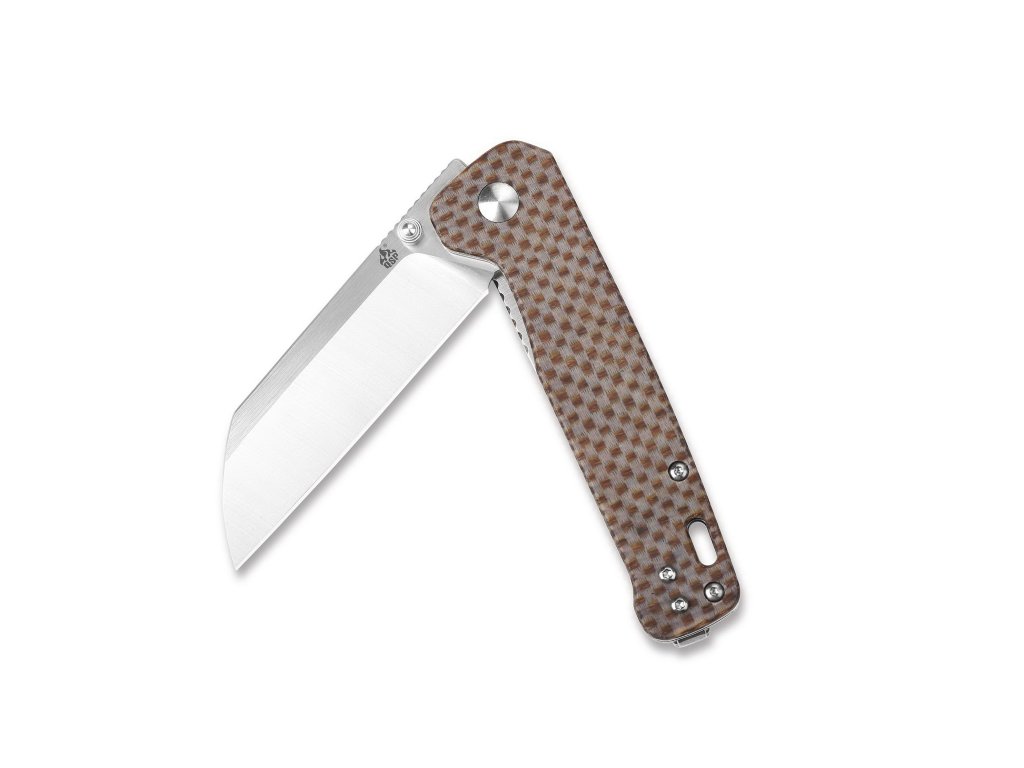 QSP Penguin este un cuțit pliabil elegant și fiabil, fabricat din materiale de calitate. Forma caracteristică a lamei sheepsfoot conferă cuțitului proprietăți de tăiere bune, permite efectuarea de lucrări fine cu vârful lamei și este foarte ușor de ascuțit. Lama, din oțel pentru unelte D2, are o grosime de 2,6 mm, un finisaj satinat și un tăiș flat grind. Mânerul este fabricat din micarta texturată, maro. Cuțitul are un sistem de blocare a lamei tip liner lock și o clemă de agățare din oțel care se poate fixa pe ambele părți. Deschidere cu ajutorul unui știft pe lamă.