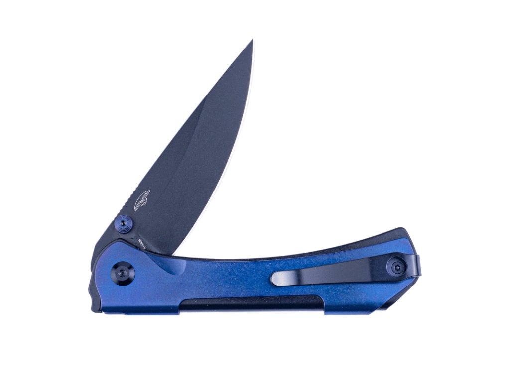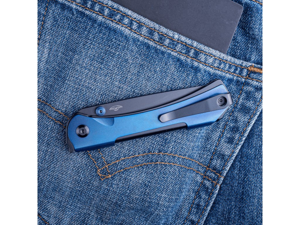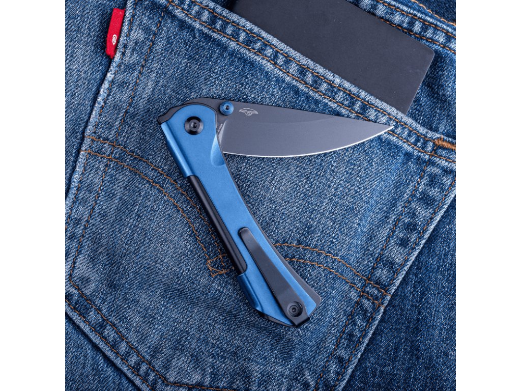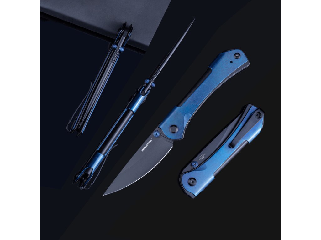 Real Steel Sylph Linerlock Blue RS7141BB este un cuțit de buzunar cu mecanism de deschidere de tip thumb stud. Este o versiune modernă a cuțitului de buzunar tradițional cu lamă drop point.