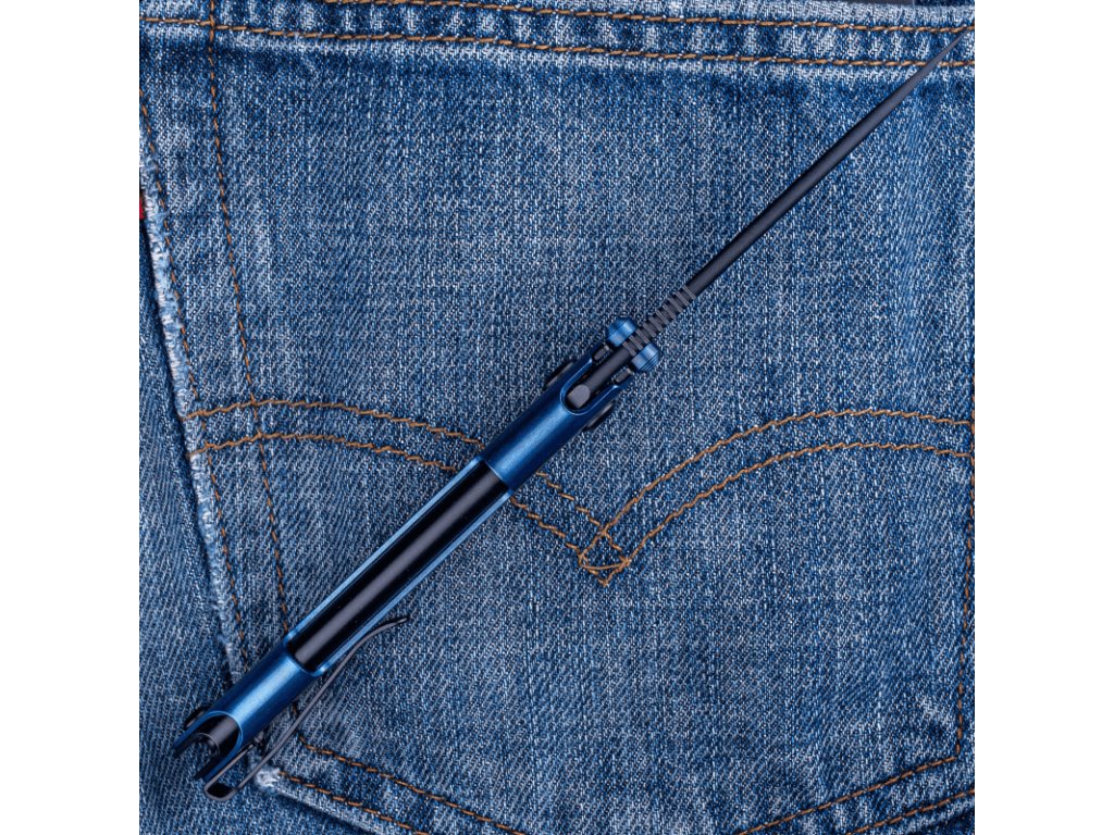 Mâner din metal de culoare albastră. Mânerul are o formă ergonomică foarte bună și se potrivește perfect în mână. Dispune de o clemă pentru buzunar.
