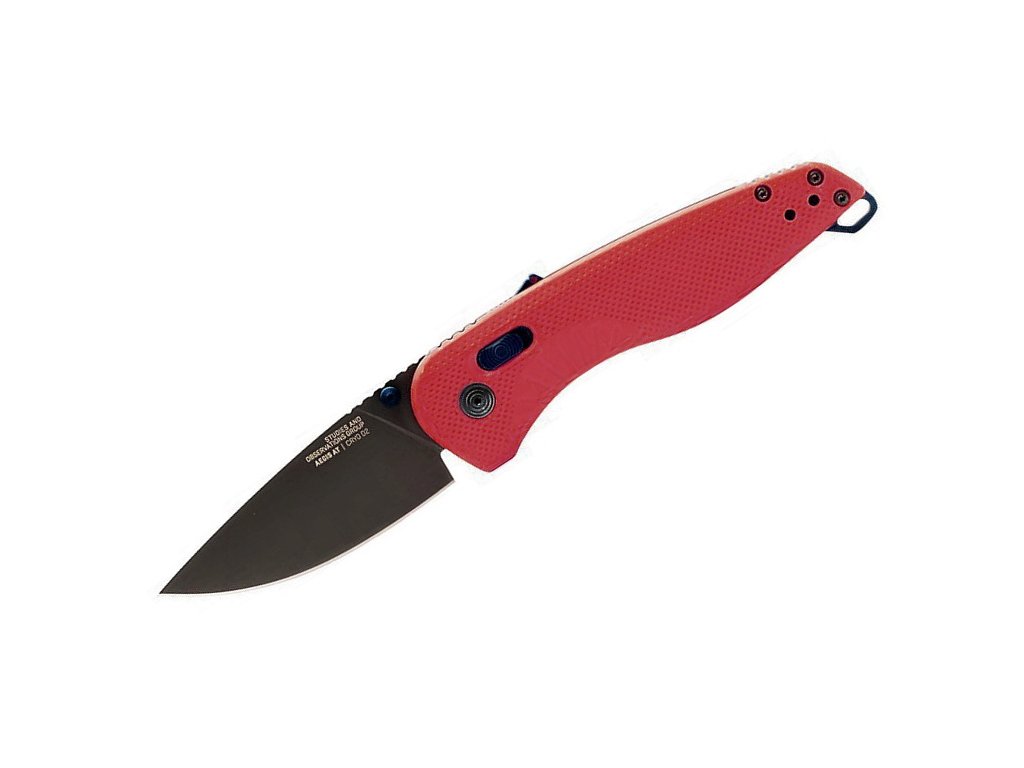 Cuțit pliabil, conceput pentru utilizare în natură. Aegis AT se caracterizează prin deschidere rapidă asistată și blocare a lamei inovatoare SOG AT-XR Lock. Lama, cu formă drop point, din oțel pentru unelte D2 tratat criogenic, are lungimea de 7,9 cm și finisaj cu nitrură de titan. Mânerul este fabricat din GRN (material compozit rezistent și durabil), cu finisaj anti-alunecare. Are o clemă pentru agățarea cuțitului din oțel inoxidabil. Deschidere cu o singură mână cu ajutorul știftului de pe lamă. Cuțit în culori roșu, indigo.