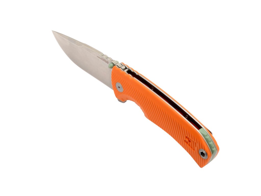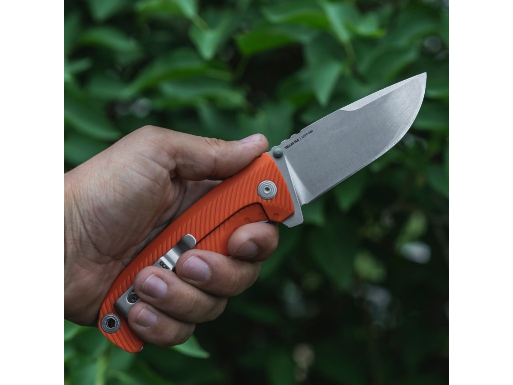 Tellus FLK - Blaze este un partener de încredere pentru activitățile în aer liber ce face parte din seria Tellus. La fel ca fiecare membru al acestei serii, și acesta va satisface așteptările dvs. pentru multe activități în aer liber. Are o lamă clip point, din oțel inoxidabil CRYO 440C, cu finisaj stonewash. Lungimea lamei este de 9,1 cm. Este un cuțit pliabil cu mecanism de deschidere thumb stud și blocare frame lock, special conceput pentru a lucra în noroi și murdărie. Nylonul este un material foarte popular pentru mânerele cuțitelor. Nylonul are o rezistență excelentă la impact, stabilitate la temperaturi ridicate, rezistență și inerție chimică. Toate aceste proprietăți au fost îmbunătățite prin adăugarea de fibre de sticlă, creând un nou material – nylon armat cu sticlă (GRN).