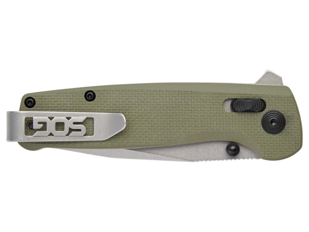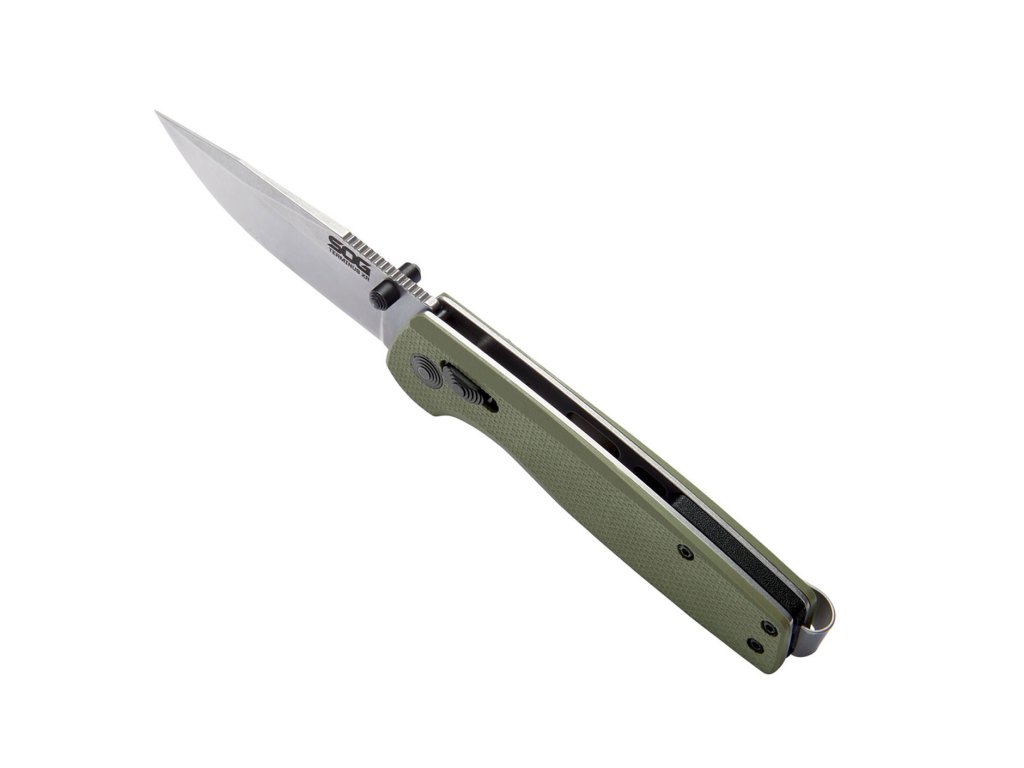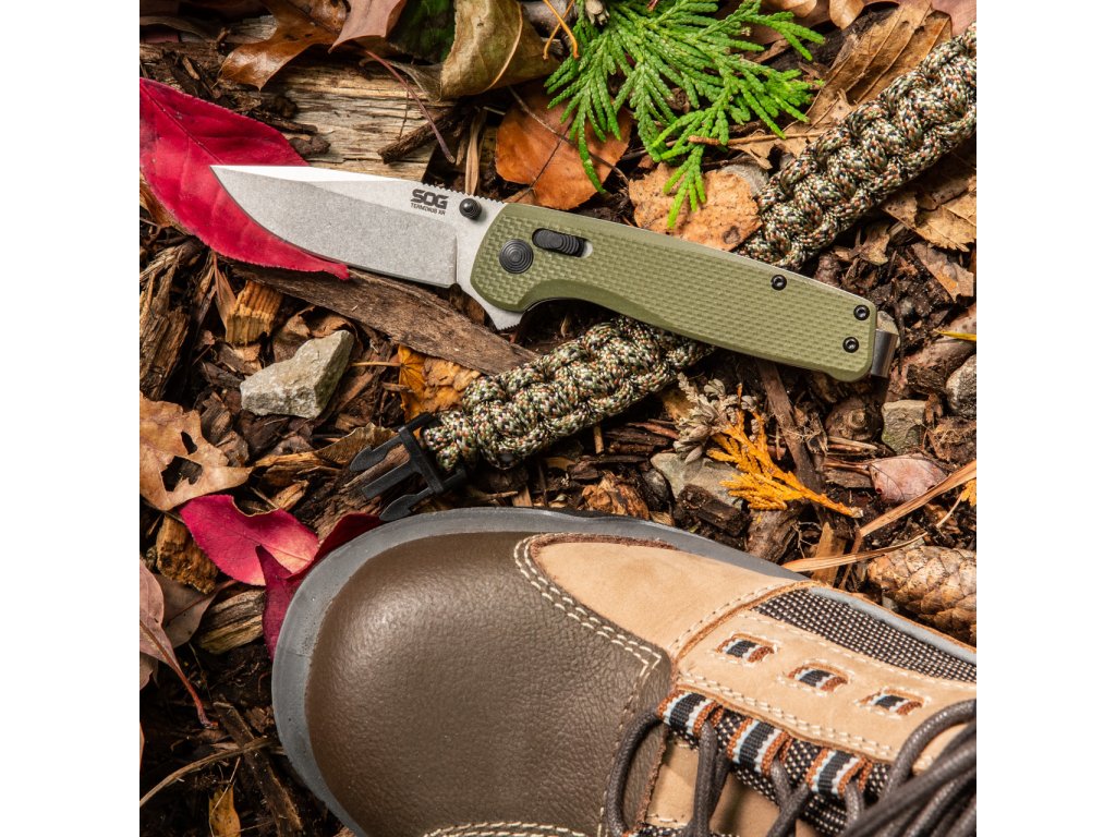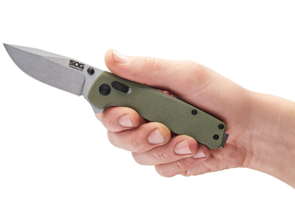 SOG Terminus XR este un cuțit pliabil rezistent, pentru uz zilnic. Mânerul este fabricat din G10, verde măsliniu. Terminus este un cuțit EDC de dimensiuni medii, cu blocare SOG XR Lock. Lama, din oțel, pentru unelte D2 tratat criogenic, cu răiș flat grind, lungime de 7,5 cm și finisaj stonewash. Are o lungime totală de 18,3 cm. Clemă din oțel inoxidabil pentru cuțit, care poate fi atașată pe ambele părți.