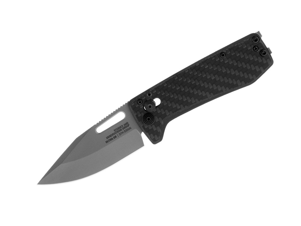 Cuțitul pliabil SOG Ultra XR este un cuțit extrem de ușor și subțire pentru uz zilnic. Cântărește doar 34 g, iar grosimea mânerului este de doar 6,5 mm. Lama din oțel inoxidabil CPM-S35VN tratat criogenic, cu tăiș flat grind, cu o lungime de 7,1 cm, are un finisaj din nitrură de titan. Mânerul este fabricat din fibră de carbon. Clema dublă din titan pentru agățarea cuțitului este destul de mare. Blocare a lamei tip SOG XR Lock.