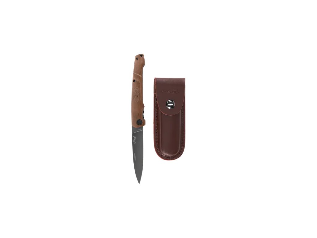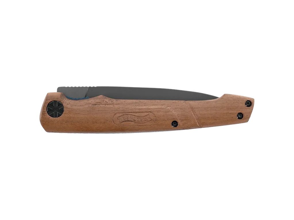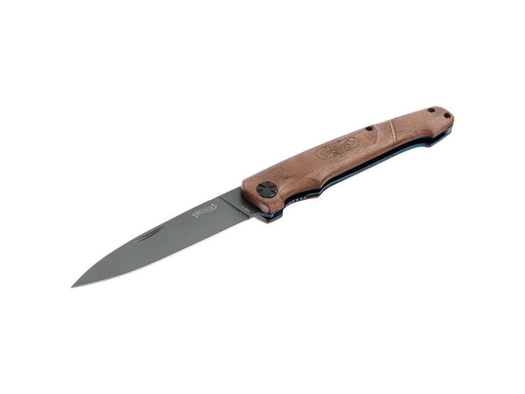 Cuțit pliabil, cu mâner din lemn și blocare a lamei tip liner lock. Walther Blue Wood Knife 1 este un cuțit pliabil excelent pentru uz zilnic și pentru activități în natură. Lama din oțel inoxidabil 440C, cu finisaj din titan, nu necesită întreținere și păstrează bine ascuțimea. Mânerul cuțitului din lemn de nuc este ergonomic și plăcut la atingere. Cuțitul este livrat cu o teacă din piele cu posibilitate de agățare la curea.
