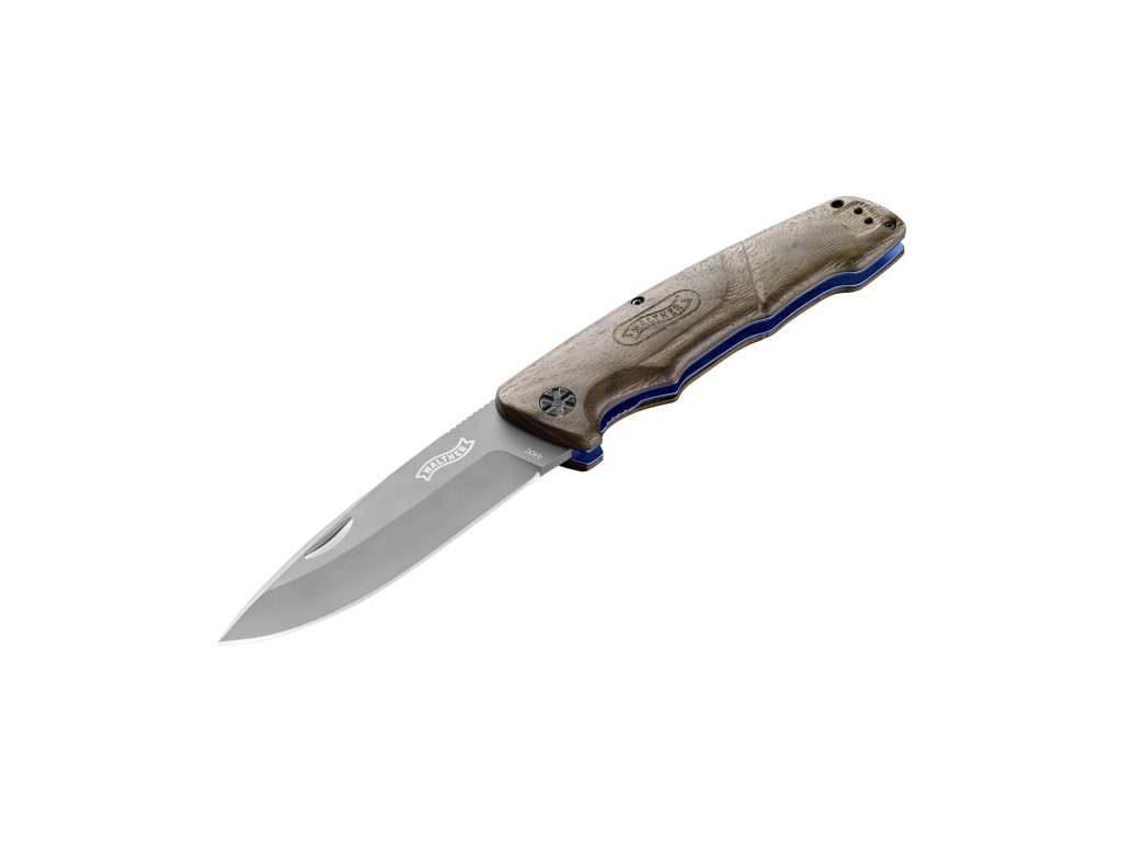 Cuțit mare pliabil, cu mâner din lemn și blocarea lamei tip liner lock. Walther Blue Wood Knife 7 este un cuțit pliabil excelent pentru activități în aer liber și vânătoare. Lama, din oțel inoxidabil 440C, cu finisaj din titan, nu necesită întreținere și își păstrează bine ascuțimea. Mânerul cuțitului din lemn de nuc este ergonomic și plăcut la atingere. Cuțitul este echipat cu o clemă pentru prindere albastră. În același timp, cuțitul este livrat cu o teacă din piele cu posibilitate de prindere la curea.