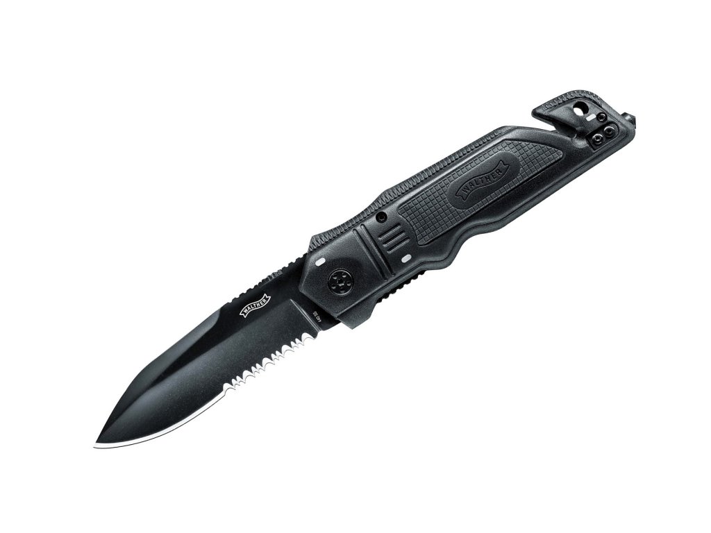 Cuțitul pentru salvare Walther ERK este un instrument atent proiectat care poate salva vieți. Lama, din oțel inoxidabil 440A are o lungime de 9,5 cm și un finisaj negru. Lama este parțial zimțată, ceea ce o face potrivită pentru tăierea corzilor, curelelor și centurilor. Mânerul din plastic FRN rezistent este completat cu inserții din cauciuc pentru o prindere sigură și de trei inserții fluorescente, care fac ca acest cuțit să fie bine vizibil în întuneric. În treimea din spate a mânerului se află două instrumente foarte importante - un tăietor de curea și un spărgător de sticlă, care sunt indispensabile în situații de urgență. Cuțitul este echipat cu un sistem de blocare a lamei de tip liner lock, o clemă de prindere din oțel (care se poate fixa pe ambele părți) și este livrat împreună cu o teacă robustă din nailon.
