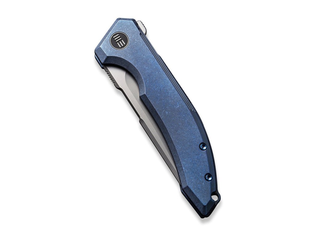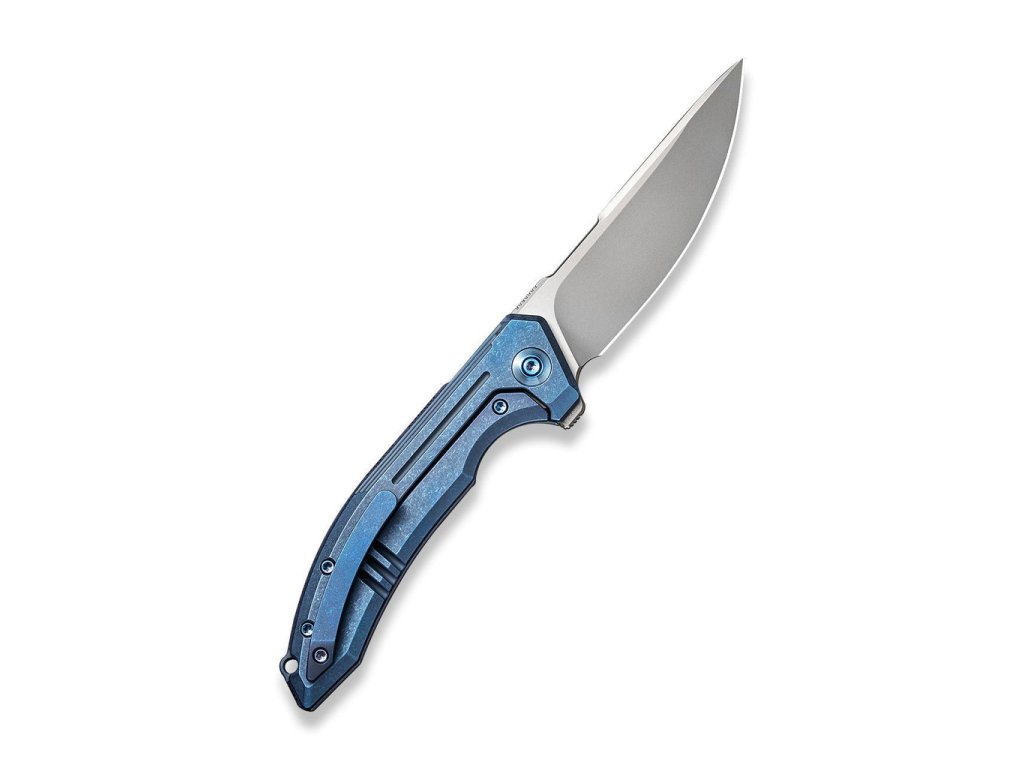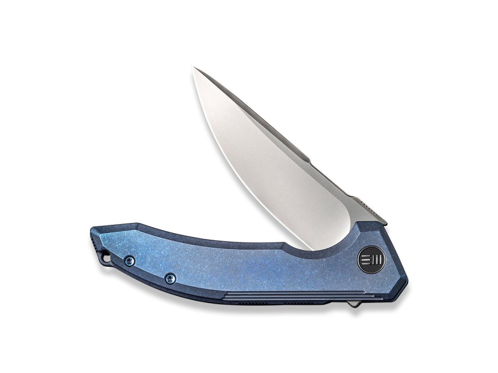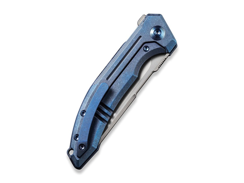 Mânerul din titan de culoare albastru este elegant curbat, ceea ce îl face să se potrivească perfect în mână. Clema și șuruburile cuțitului sunt, de asemenea, din titan. Deschiderea cu un flipper este extrem de ușoară, iar rulmenții ceramici sunt o caracteristică standard.