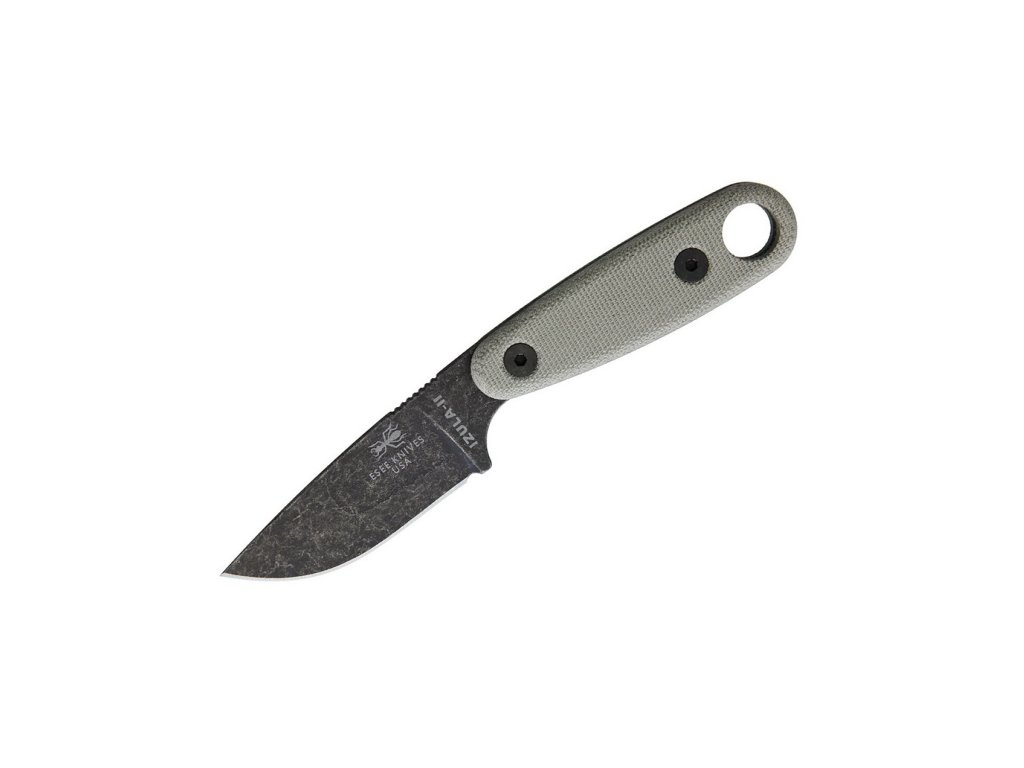 ESEE Izula este un cuțit mic și ușor, potrivit pentru purtat la gât sau ascuns. Lama, de lungime 6,68 cm, fabricată din oțel carbon 1095, are un finisaj black oxide și un tăiș tip flat grind. Deoarece este din oțel carbon, lama are tendința de a rugini și de a căpăta patină, în special pe tăiș și acolo unde finisajul suprafeței lamei este deteoriat în timp. Din acest motiv, este recomandabil să întrețineți oțelul cu ulei. Mâner din micarta, verde. Teacă din plastic, neagră, cu clemă pentru agățare.