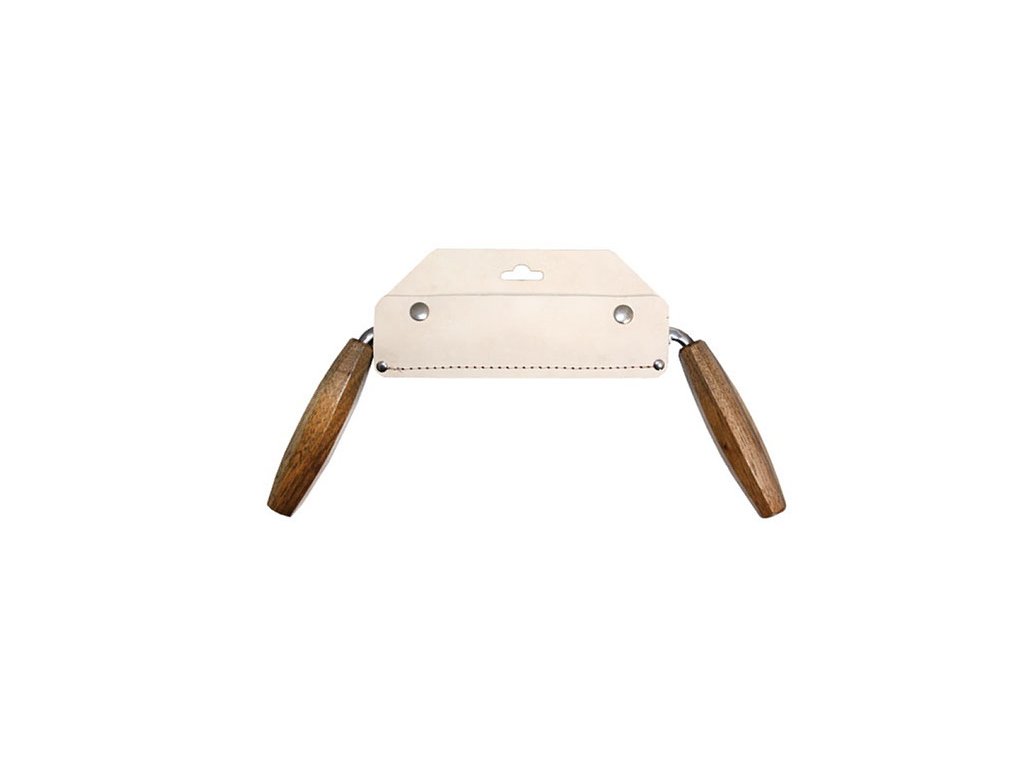 Acest cuțit practic, care se folosește cu ambele mâini, este utilizat pentru modelarea lemnului prin îndepărtarea așchiilor. Este ideal pentru curățarea scoarței și îndepărtarea bucăților mici de lemn. Mânerele sunt fabricate din lemn de fag de bună calitate. Lama are o lungime de 15 cm și este fabricată din oțel crom-vanadiu de bună calitate, cu o duritate de 57 HRC. Pachetul include și o teacă de protecție din piele pentru lamă.