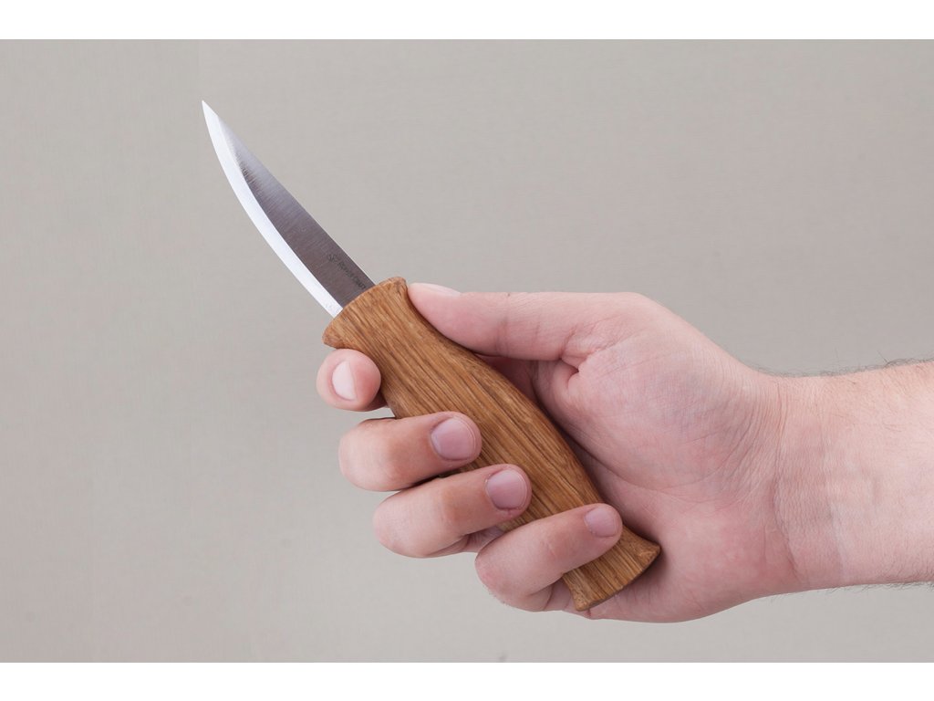 Cuțit pentru sculptura în lemn, cu lamă lungă, conceput pentru prelucrarea lemnului și sculptură. Lama este fabricată din oțel carbon 65G, duritate de 57-59 HRC și are o lungime de 8 cm. Cuțitul din oțel carbon 65G rezistă bine la uzură și este ușor de ascuțit, dar este predispus la rugină (lama trebuie curățată și uscată bine după utilizare; de asemenea, este recomandabil să o ungeți ocazional cu ulei). Mânerul este realizat din lemn de frasin, impregnat cu ulei de in.