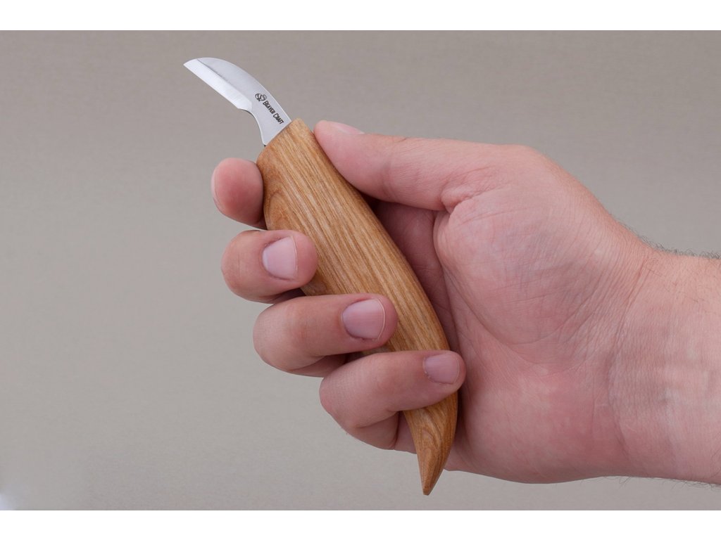 Cuțit special pentru sculptura în lemn, cu lamă scurtă. Potrivit pentru sculptarea formelor rotunjite netede, a formelor geometrice și a detaliilor. Lungimea părții ascuțite a lamei este de 2,5 cm. Lama este fabricată din oțel carbon 65G, duritate de 57-59 HRC. Cuțitul din oțel carbon 65G rezistă bine la uzură și este ușor de ascuțit, dar este predispus la rugină (lama trebuie curățată și uscată bine după utilizare; de asemenea, este recomandabil să o ungeți ocazional cu ulei). Mânerul este realizat din lemn de frasin, impregnat cu ulei de in.