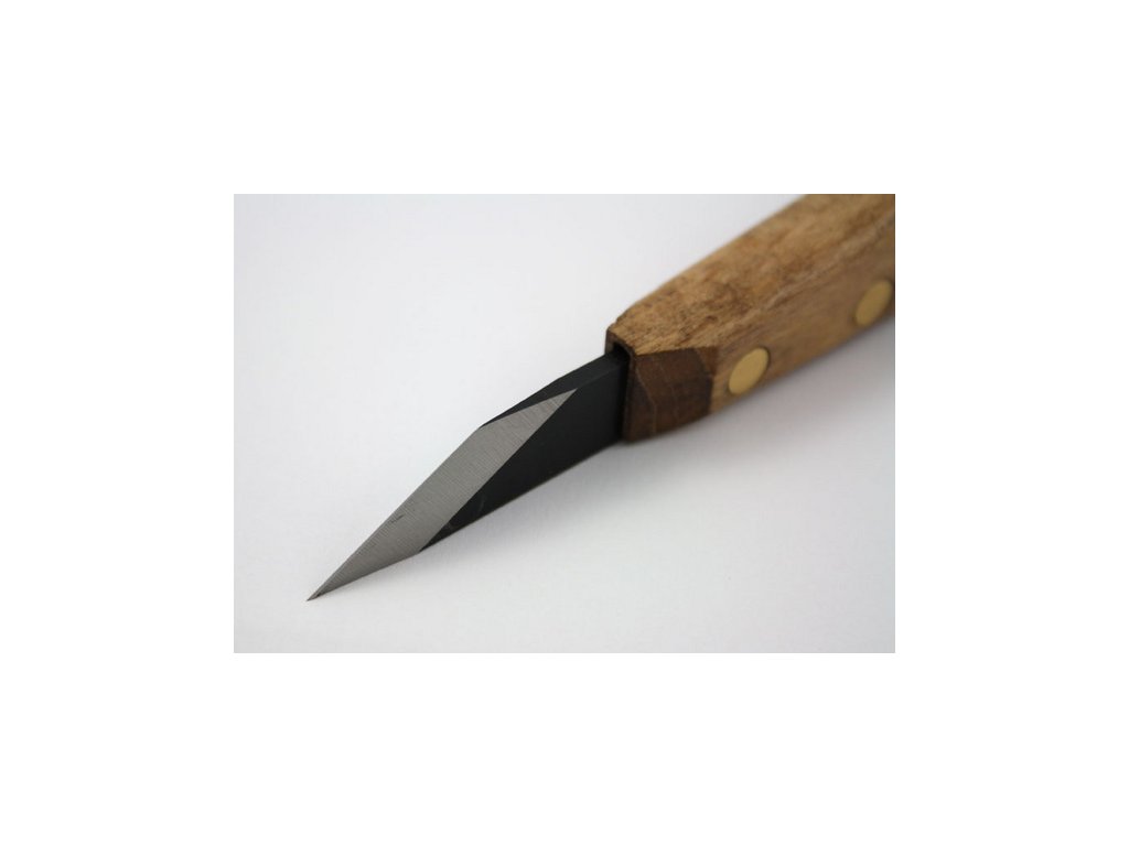 Cuțit pentru sculptura în lemn de la Narex Bystřice. Cuțitul este foarte ascuțit, iar tăietura rezultată este foarte fină, fără crăpături în lemn. Lama, de lungime 4 cm, este fabricată din oțel mangan-vanadiu de bună calitate, cu o duritate de 60-62 HRC. Datorită durității ridicate, cuțitul rezistă bine la uzură și este, astfel, potrivit pentru lucrul atât cu lemnul moale, cât și cu cel dur. Mâner din lemn de fag colorat.
