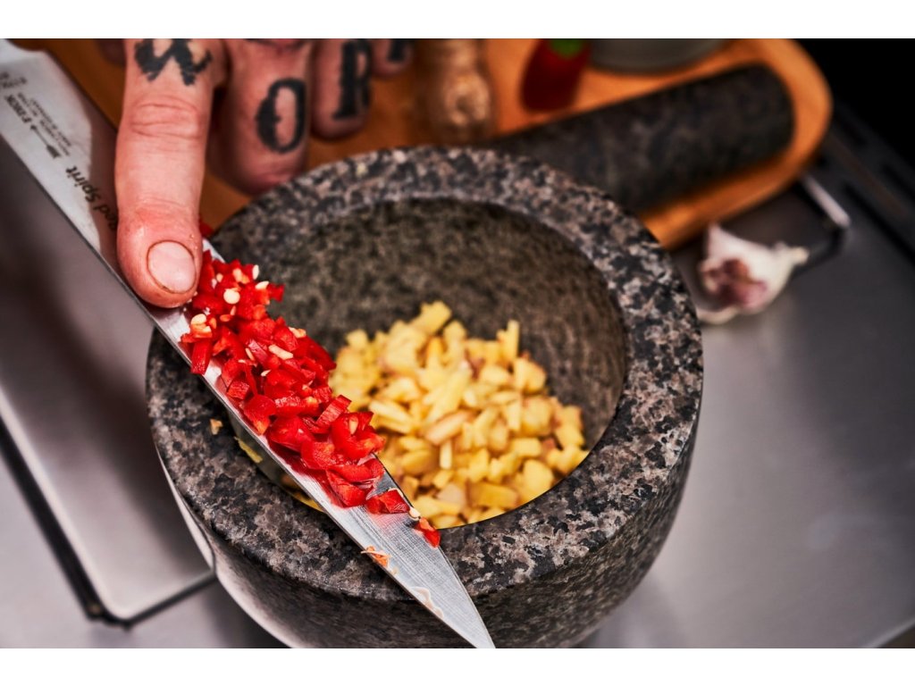Cuțitul pentru bucătărie premium din seria Dick Red Spirit este o combinație între măiestria asiatică și calitatea germană. Acest cuțit pentru bucătărie atractiv va lumina bucătăria dvs. și, datorită culorii roșii utilizate, va deveni un element de neratat în bucătăria dvs. Pentru seria Red Spirit, producătorul a folosit ca sursă de inspirație zeița asiatică a soarelui, al cărei simbol este tocmai culoarea roșie. Acest cuțit este fabricat integral în Germania.