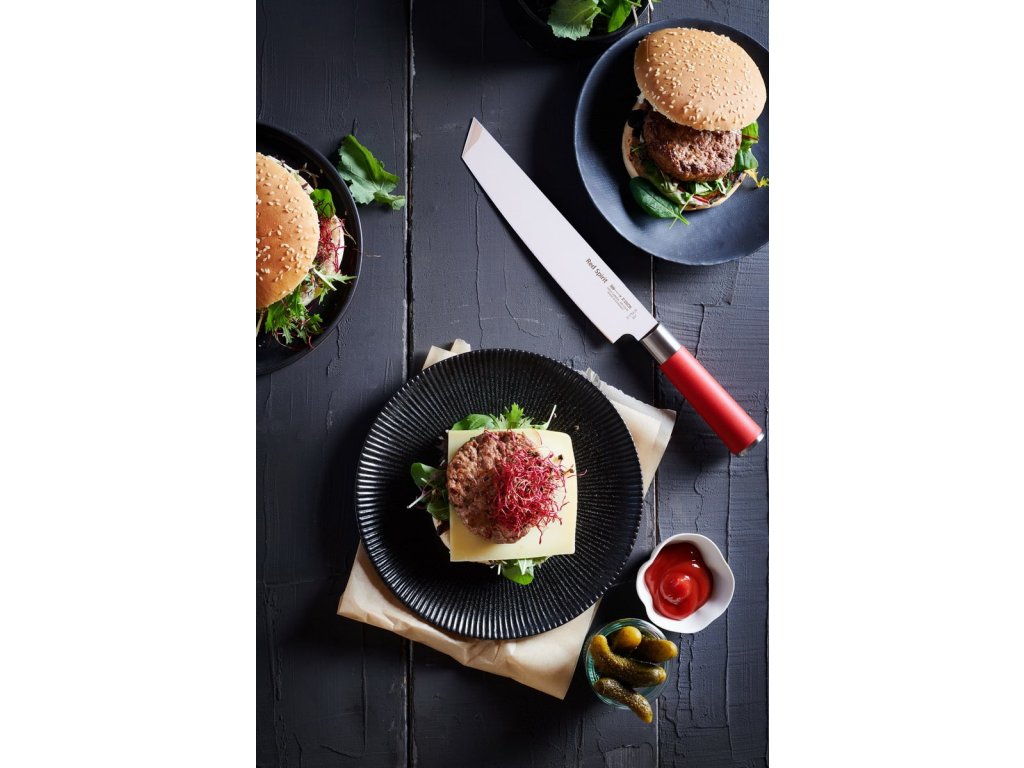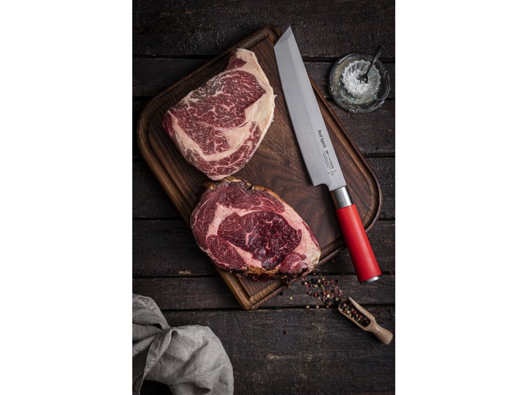 Cuțitul pentru bucătărie premium din seria Dick Red Spirit este o combinație între măiestria asiatică și calitatea germană. Acest cuțit pentru bucătărie atractiv va lumina bucătăria dvs. și, datorită culorii roșii utilizate, va deveni un element de neratat în bucătăria dvs. Pentru seria Red Spirit, producătorul a folosit ca sursă de inspirație zeița asiatică a soarelui, al cărei simbol este tocmai culoarea roșie. Acest cuțit este fabricat integral în Germania.