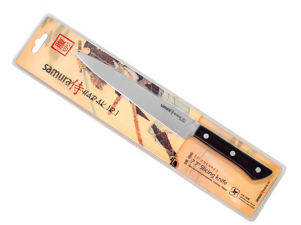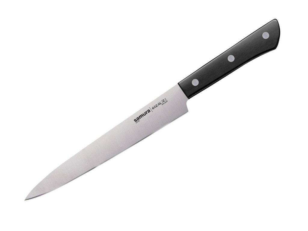 Cuțitele pentru bucătărie Samura din seria Harakiri combină lama subțire din oțel japonez și mânerul practic din plastic ABS. Sunt ușoare și oferă un raport foarte bun calitate-preț.