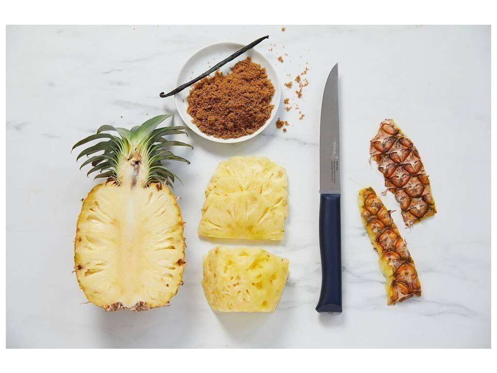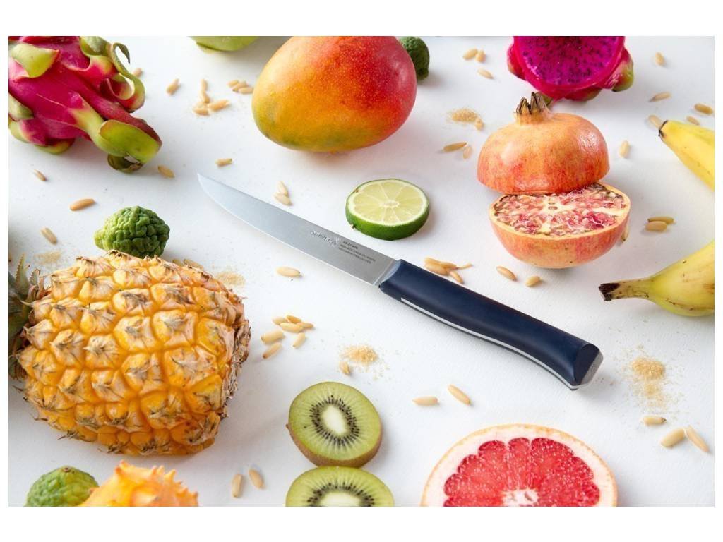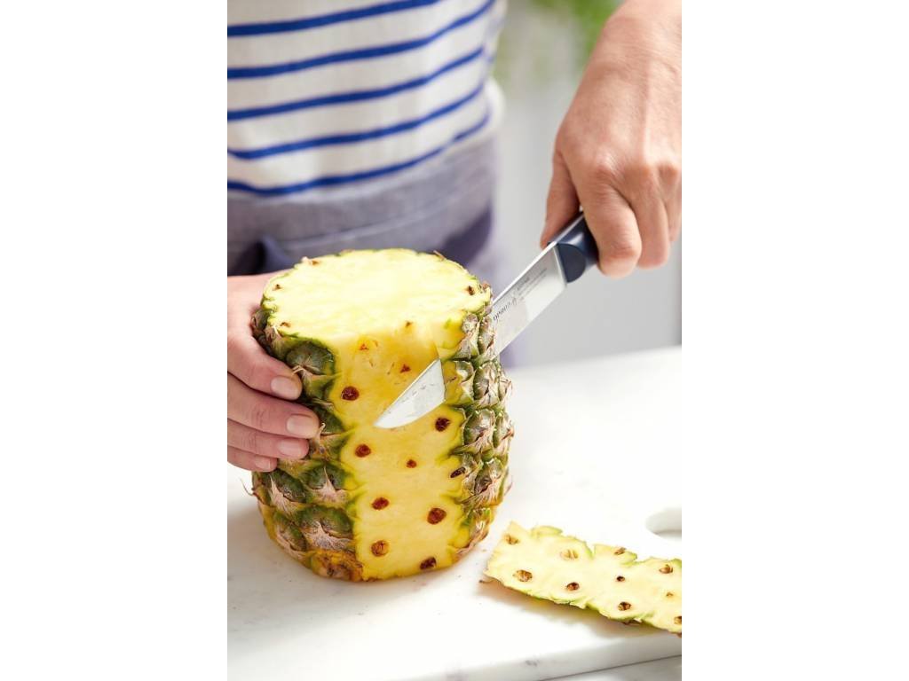 Cuțit universal pentru bucătarie de la producătorul francez Opinel. Lama de 16 cm, din oțel inoxidabil Sandvik 12C27, este ideală pentru pentru prelucrarea cărnii și a legumelor. Mânerul este fabricat din polimer termoplastic (POM), care are o rezistență ridicată la uzură, apă și impact. Protecția la capătul mânerului vă protejează mâna de alunecare și crește siguranța atunci când manevrați cuțitul.