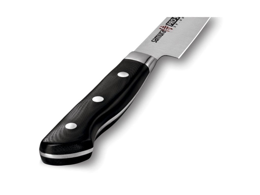 Cuțitele Samura din seria PRO-S reprezintă cuțite pentru bucătărie cu design european clasic, combinate cu oțel japonez AUS-8. Cuțitele Samura PRO-S sunt prelucrate cu precizie, bine echilibrate și oferă un raport foarte bun între calitate, design și preț. Sunt livrate într-o cutie frumoasă, fiind potrivite și drept cadou.