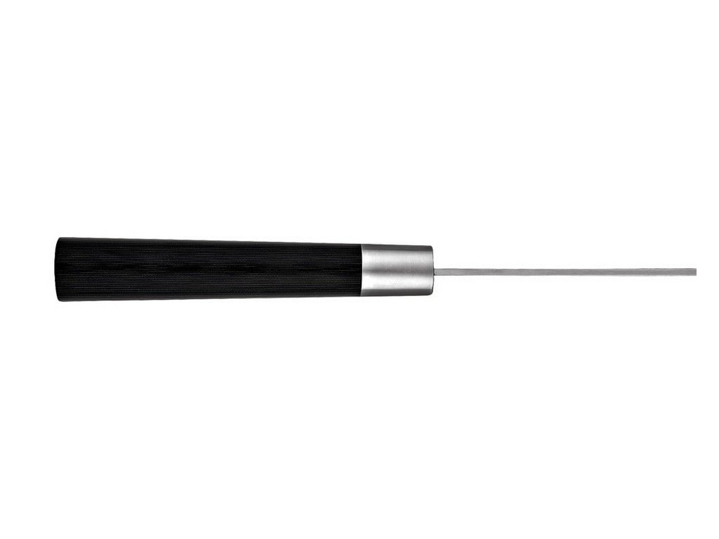 Lamă din oțel de Damasc japonez forjat manual (5 straturi) cu miez din oțel VG-10. Lamele sunt extrem de ascuțite și oferă proprietăți excelente de tăiere.